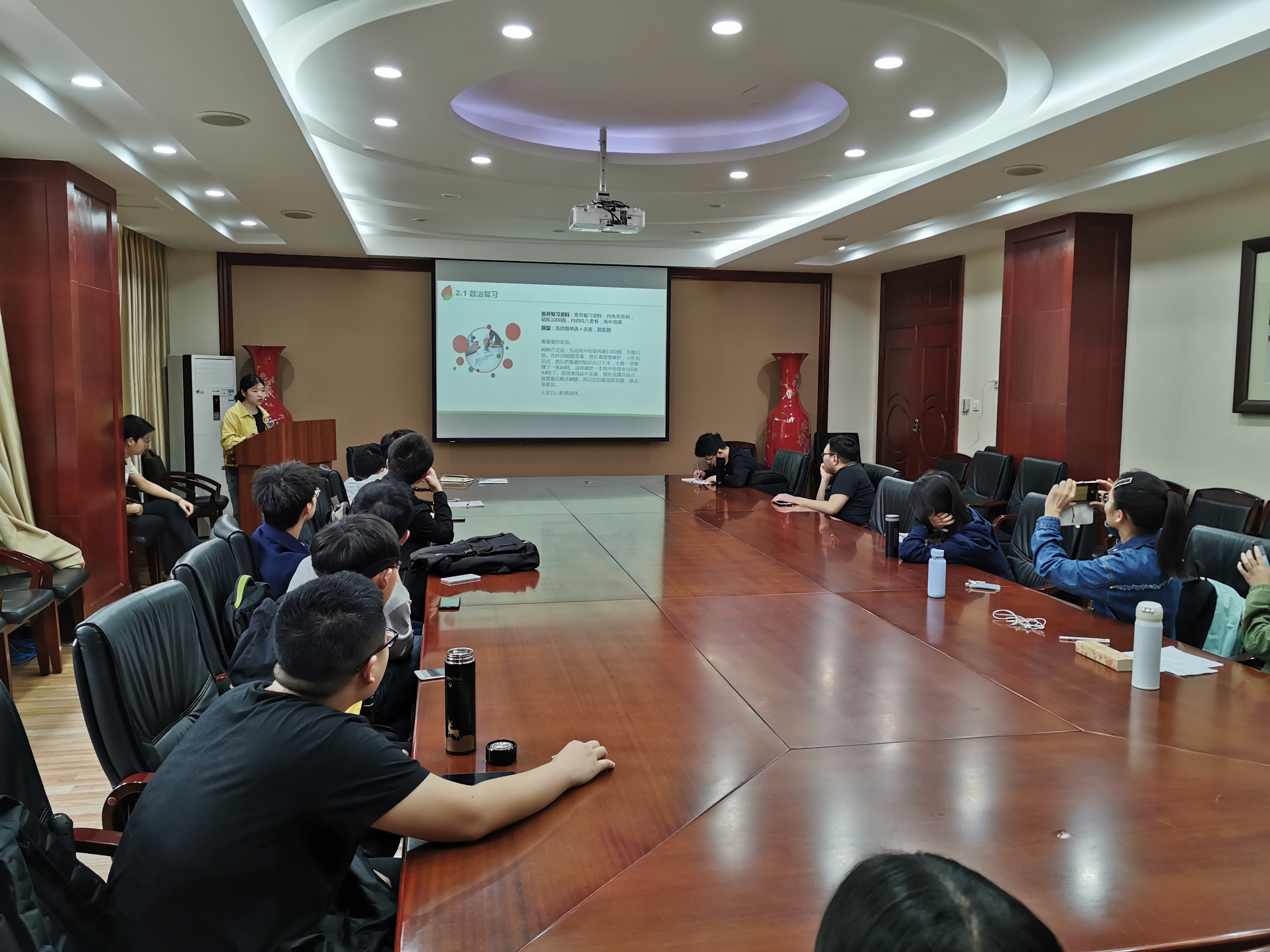 在皮革楼209会议室举行了一场小型考研交流会。本次交流会邀请到2019届优秀考研学生余国飞、张晓玲及2020届部分有考研意向及还未确定毕业去向的同学参加,由2016级本科生辅导员王舒灏老师主持。