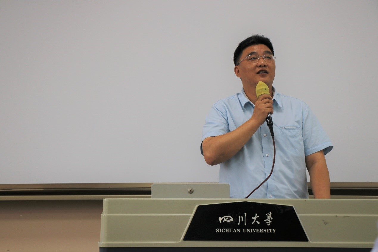 紧接着,彭必雨副院长从大学教育的目的在于知识传授、价值塑造和能力培养入手,介绍了学院人才培养体系和创新举措,包括教师制度改革、非标准化考试和学业管理,还强调了本科教学的纪律。最后谈到免试攻读研究生相关规定时,对2019级新生提出了尽早谋划、实现目标的希望。