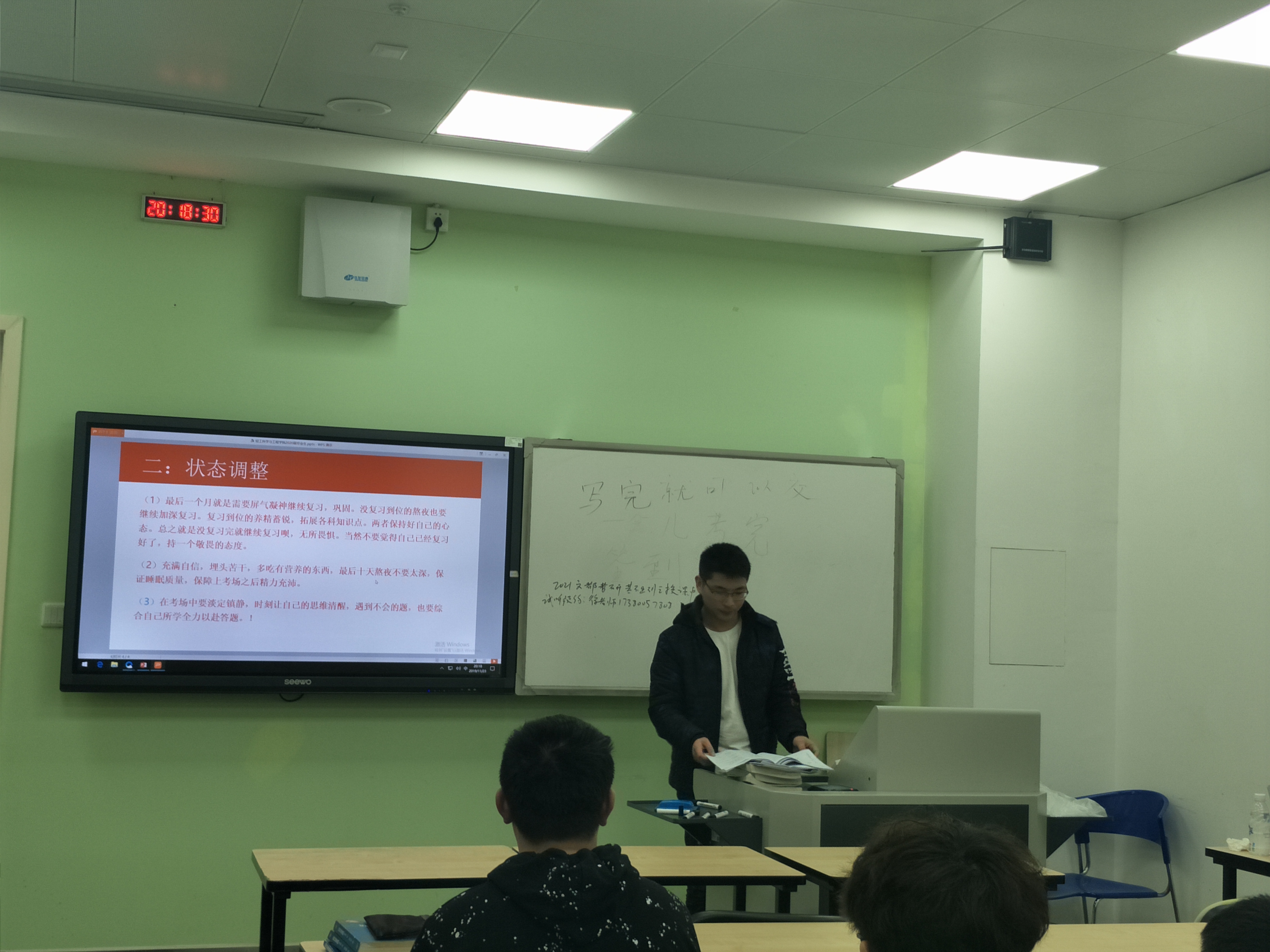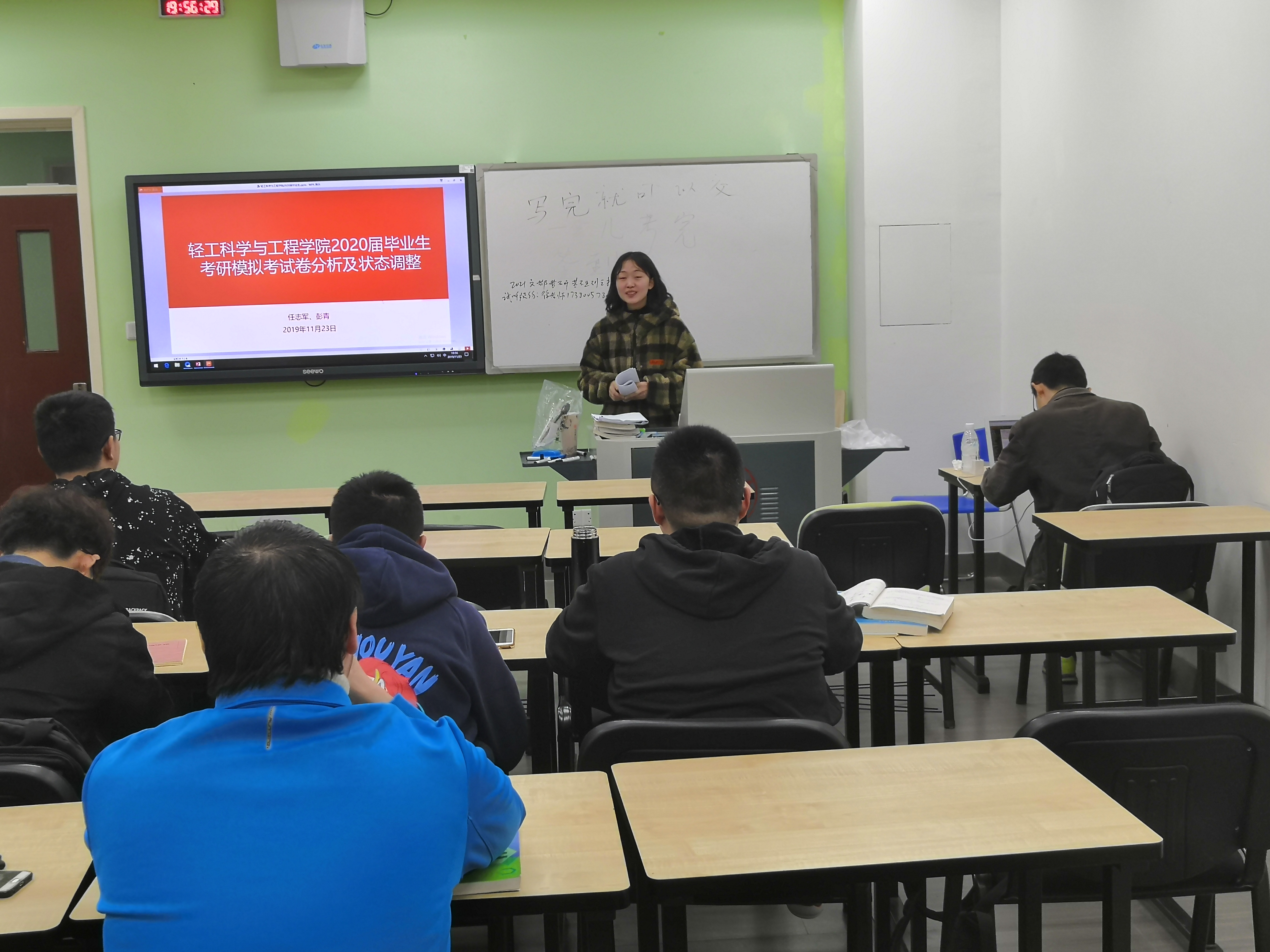 11月23日晚8:00,两位小导师在基教A302就本次专业课考试情况和同学们交流,首先小导师肯定了同学们的复习效果,接着对本次试卷进行了分析,最后对后期复习计划及心态调整进行了分享。