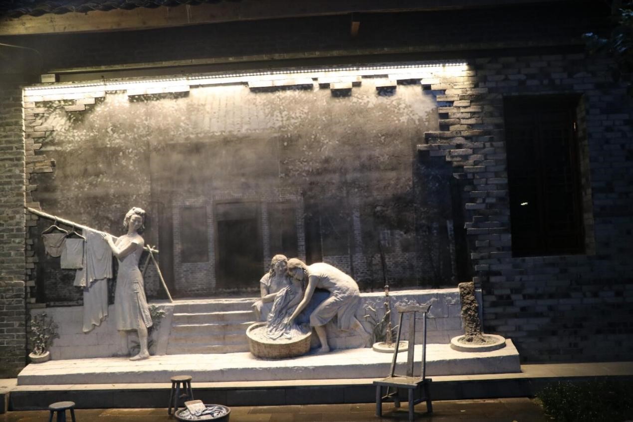 最后同学们参观了由故事浮雕墙和染布情景再现组成的院落。院落中当年女生院的皂角树屹立至今,洗衣染布图生动再现了江姐当年带领女生院的同学们染布的情景。