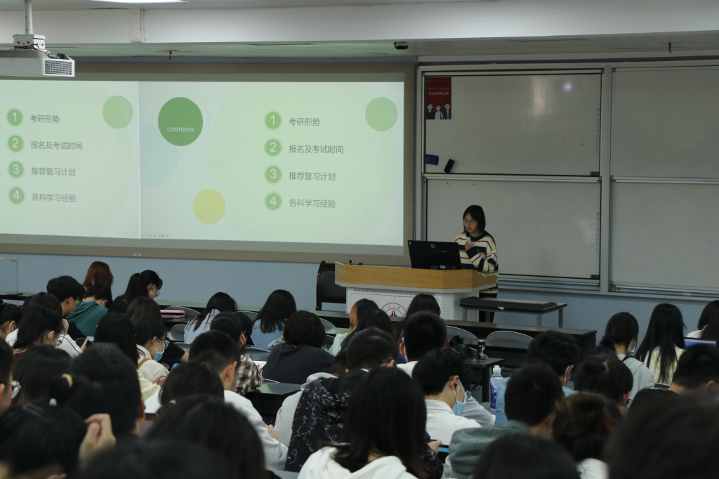 食品科学与营养健康专业拟录取。史雅辰主要从近三年考研形势、如何树立考研信心、备考心态调整等方面做了详细的介绍。并对2020级同学提出了建议:在大二下学期先明确考研目标和方向,学好当下专业课程,持续推进英语的学习积累。进入大三开始按照计划启动考研复习,养成做笔记的习惯,并不要受周围同学的复习节奏的干扰,脚踏实地,切勿急躁。
