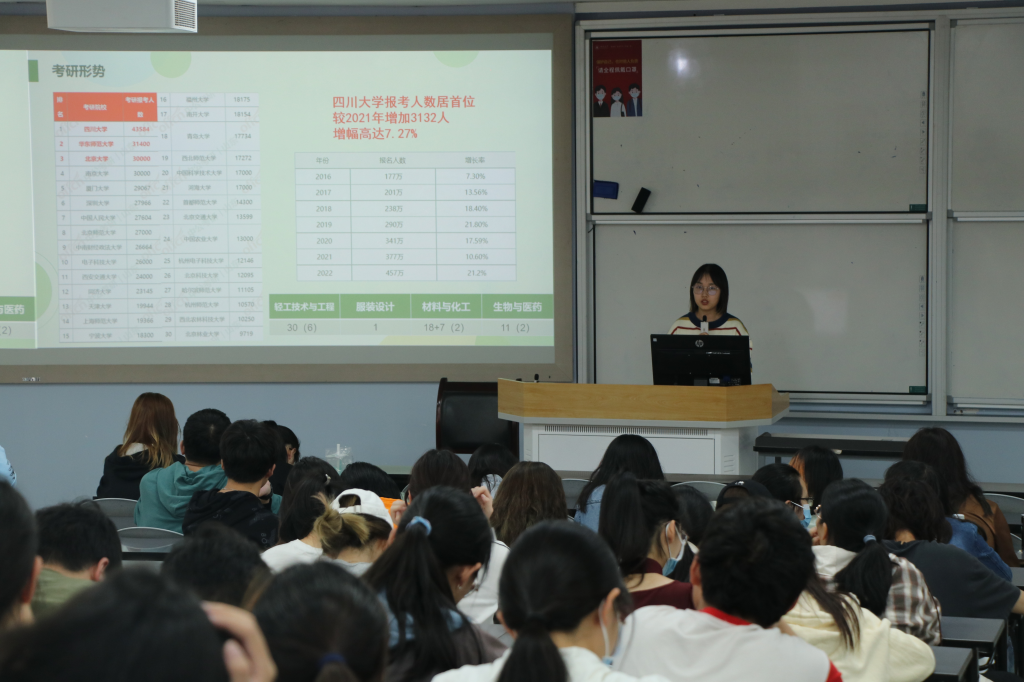 思学中心于2022年4月8日下午在江安一教B207教室开展“筑梦考研,扬帆起航”考研经验分享会。本次活动特别邀请2018级学生史雅辰和钟旭斌作为主讲人,2020级辅导员余昕玲老师和2020级全体本科生参加了本次活动。