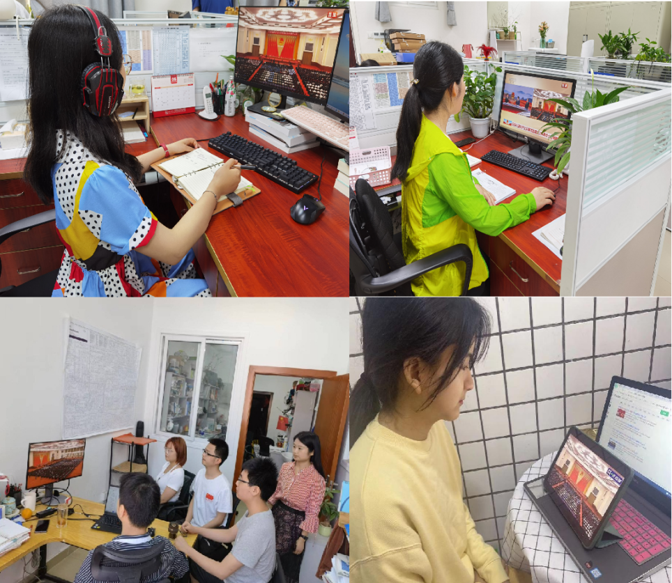 认真组织全院师生通过各种方式收听收看,学院班子成员、教工党支部书记、学生支部书记等在纺工附楼205会议室集中收看,其余师生以手机、电脑、电视等多种形式收听收看庆祝大会。