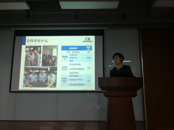 宣讲会由何有节院长主持。何院长代表院系欢迎德赛尔公司客人的光临,感谢公司为学院本科及研究生提供实习岗位,回顾了近几年学院皮革工程系轻化工程专业卓工班大三学生在德赛尔公司实习的情况,同时鼓励学生积极参加实习实践,全面提高自身综合能力。卢代虹助理经理介绍了公司的基本情况,龙进经理详细讲解了实习的主要内容和安排。据悉,本次德赛尔公司的暑期实习将吸纳AV研究所