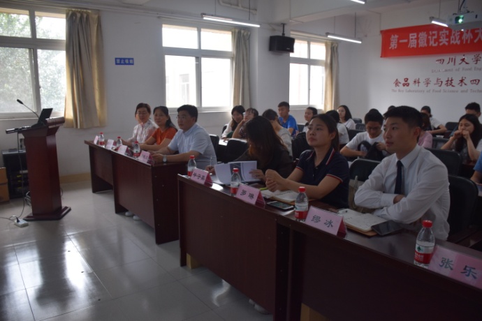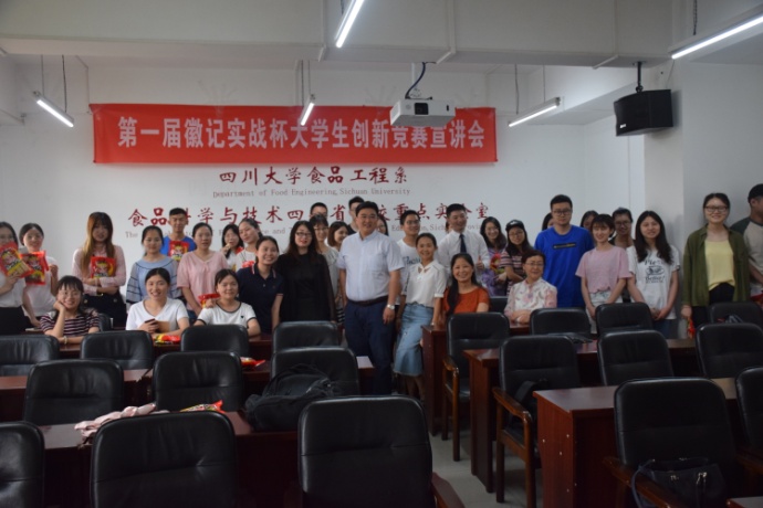 2018年5月31日下午15: 00整,由轻纺与食品学院食品工程系、四川徽记食品股份有限公司主办的“第一届徽记实战杯大学生创新竞赛宣讲会”于望江纺工楼202举行。出席本次宣讲会的嘉宾有徽记食品股份有限公司董事长助理毕守英女士、市场副总监罗琳女士、总经办主任缪冰先生、中心项目张乐女士,轻纺与食品学院党委刘晓虎书记,食品工程系主任吕远平教授、食品工程系副主任贾利蓉教授、食品工程系邓莎老师。AV研究所