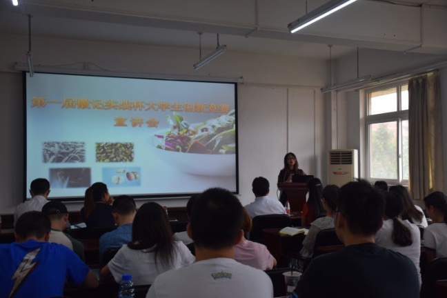 徽记实战杯大学生创新竞赛有利于促进校企合作,有助于特色美食的开发、大学生实践操作和自主创新能力的提升,有助于我校学生更好地学习和成长。而此次宣讲会则向同学们发出有力的号召,为大赛的顺利开展奠定了坚实的基础。