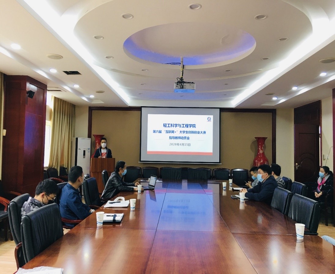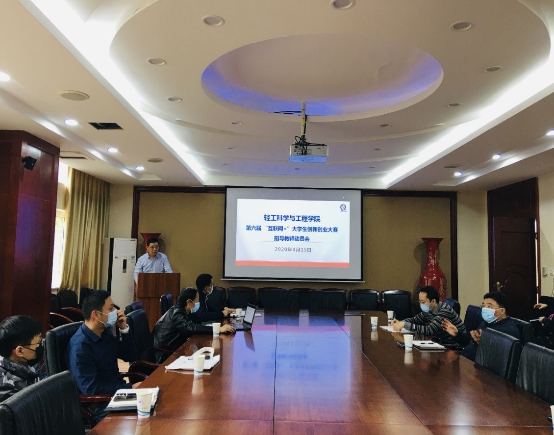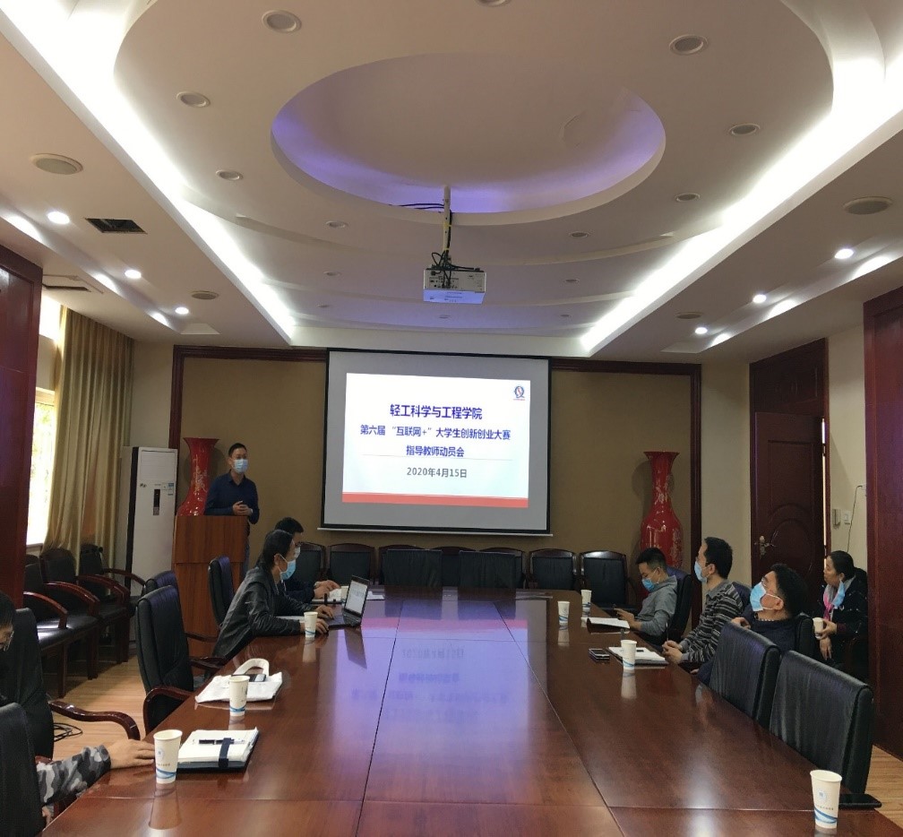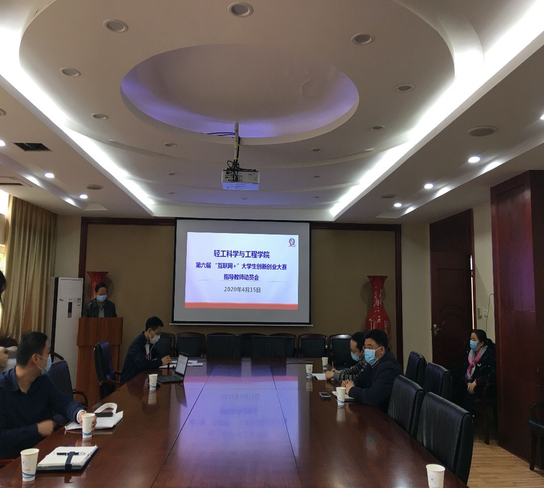 于4月15日下午16:00在皮革楼209召开第六届“互联网+”大赛指导教师动员会。学院党委书记刘晓虎副教授、院长何有节教授、副院长彭必雨教授、党委冯国涛副书记以及大赛指导教师代表出席会议。