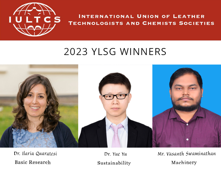 YLSG是由IULTCS研究委员会(IUR)组织的评审委员会评选,授予年龄在35岁以下的年轻科学家,是国际皮革科技领域青年学者的最高荣誉。2023年度共有3位皮革科技工作者获奖。除余跃副研究员获“青年皮革科学家——可持续发展奖”外,罗马尼亚布加勒斯特皮革和制鞋研究所的Ilaria Quaratesi博士荣获“青年皮革科学家——基础科研奖”,印度金奈安娜大学的Vasanth Swaminathan博士生荣获“青年皮革科学家——机械科研奖”。
