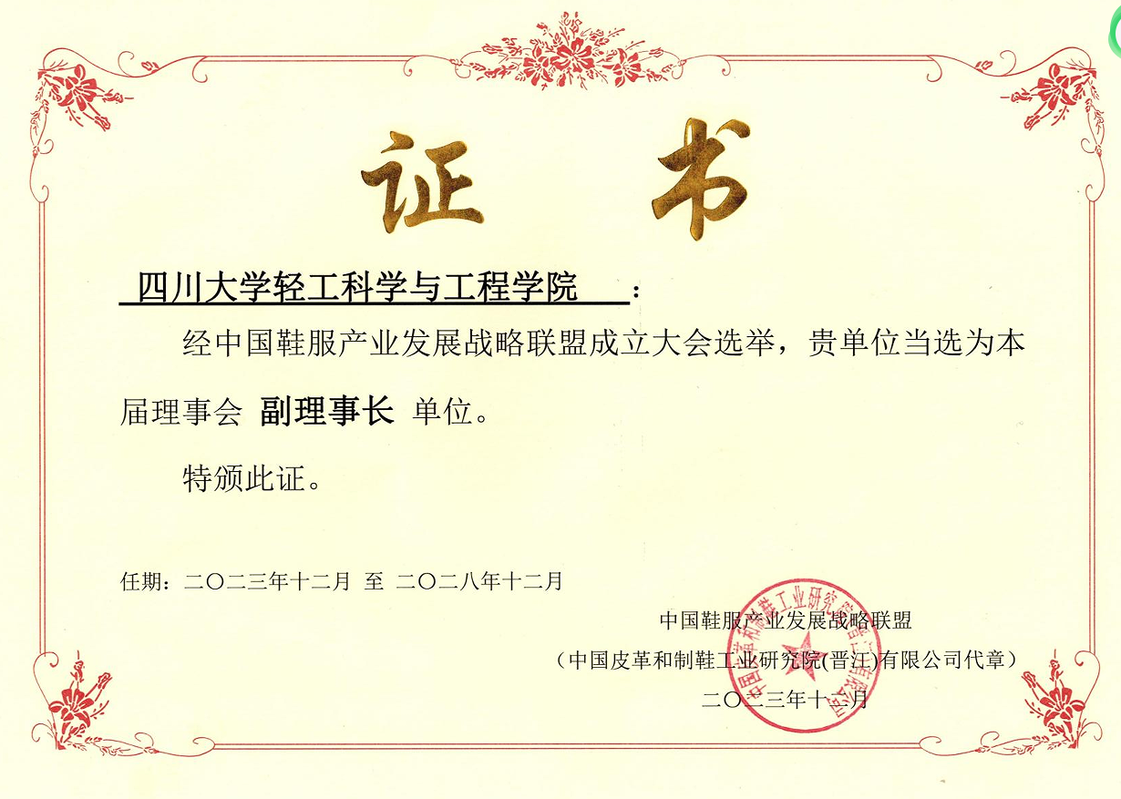 与华南理工大学、安踏(中国)有限公司、海西纺织新材料工业技术晋江研究院四单位当选为中国鞋服产业发展战略联盟第一届理事会副理事长单位。