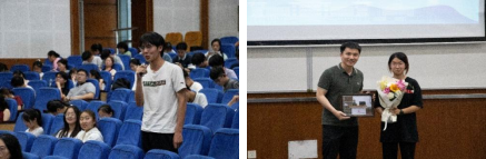 在交流互动环节中,周加境老师对现场同学们提出的问题做了耐心详细的解答。周老师的详尽解答帮助同学们发掘全新视角、深化领域认知,并对专业素养的提高提供了宝贵启示,赢得阵阵掌声。最后,同学代表为周老师献上鲜花以表示感谢。