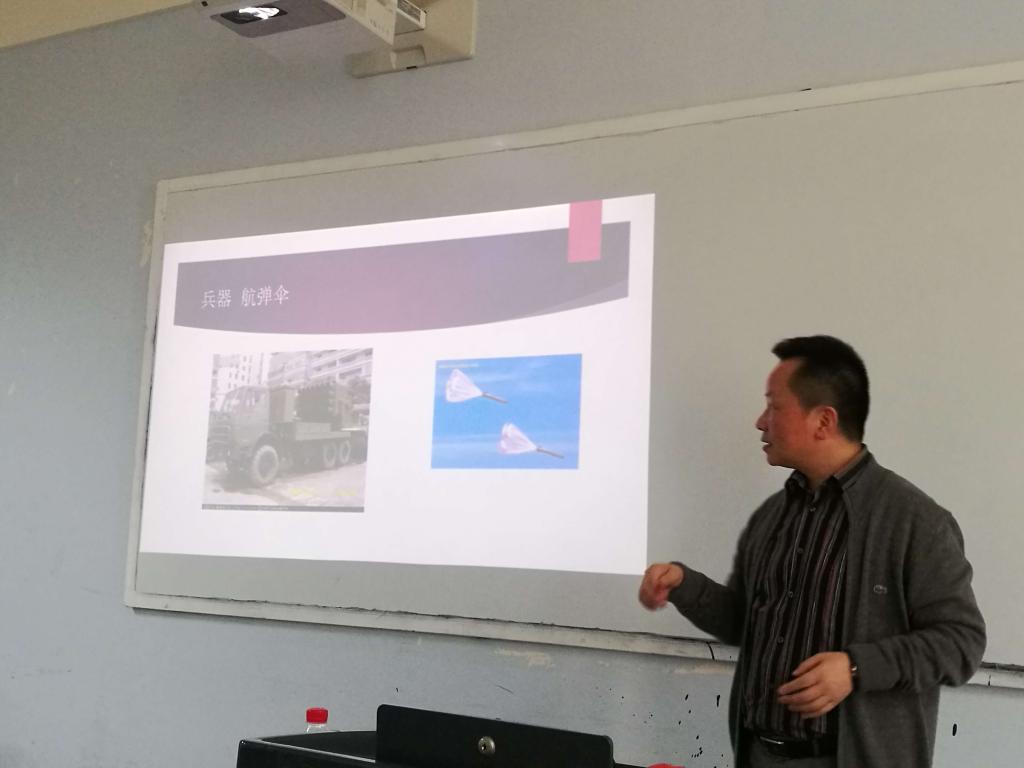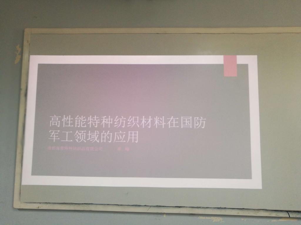 李峰总工程师从特种纺织品在“后勤保障”“装备配套”等方面的应用并结合海蓉特种纺织品有限公司在航天航空及军用降落伞的生产及应用情况,作了精彩的报告。通过聆听报告,大一同学们增强了对军用纺织品以及专业内涵的进一步了解和认识。
