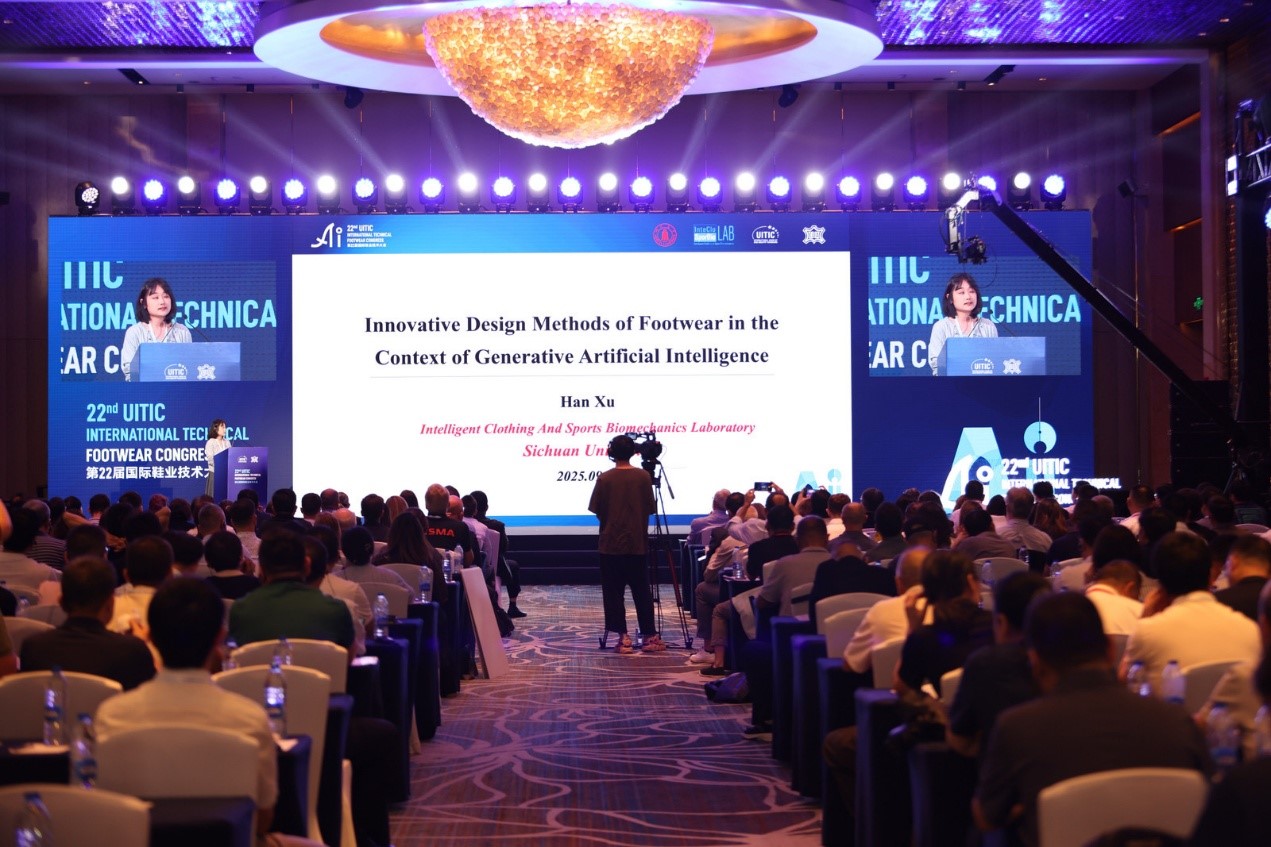 许晗在会议上作了主题报告,就生成式AI的发展历程及其在鞋类设计中的创新应用方法进行了分享。