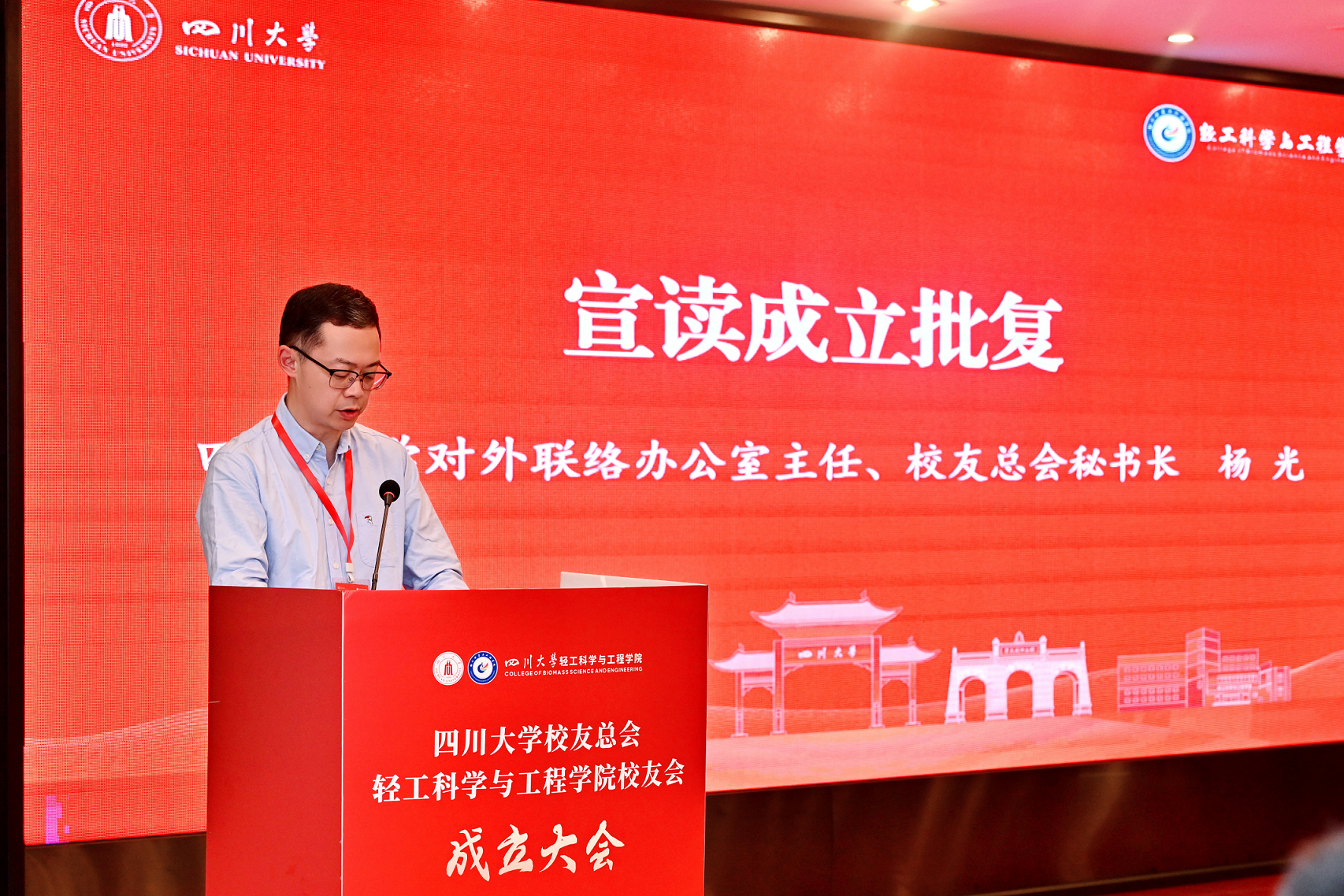 学院校友会名誉会长石碧院士致辞,他表示学院的发展离不开每一位校友的参与,校友会将成为母院与校友之间一个开放、包容、共享的平台,希望校友们继续发扬“海纳百川,有容乃大”的川大精神助力学院发展,祝愿校友会蓬勃发展,祝愿各位校友前程似锦。