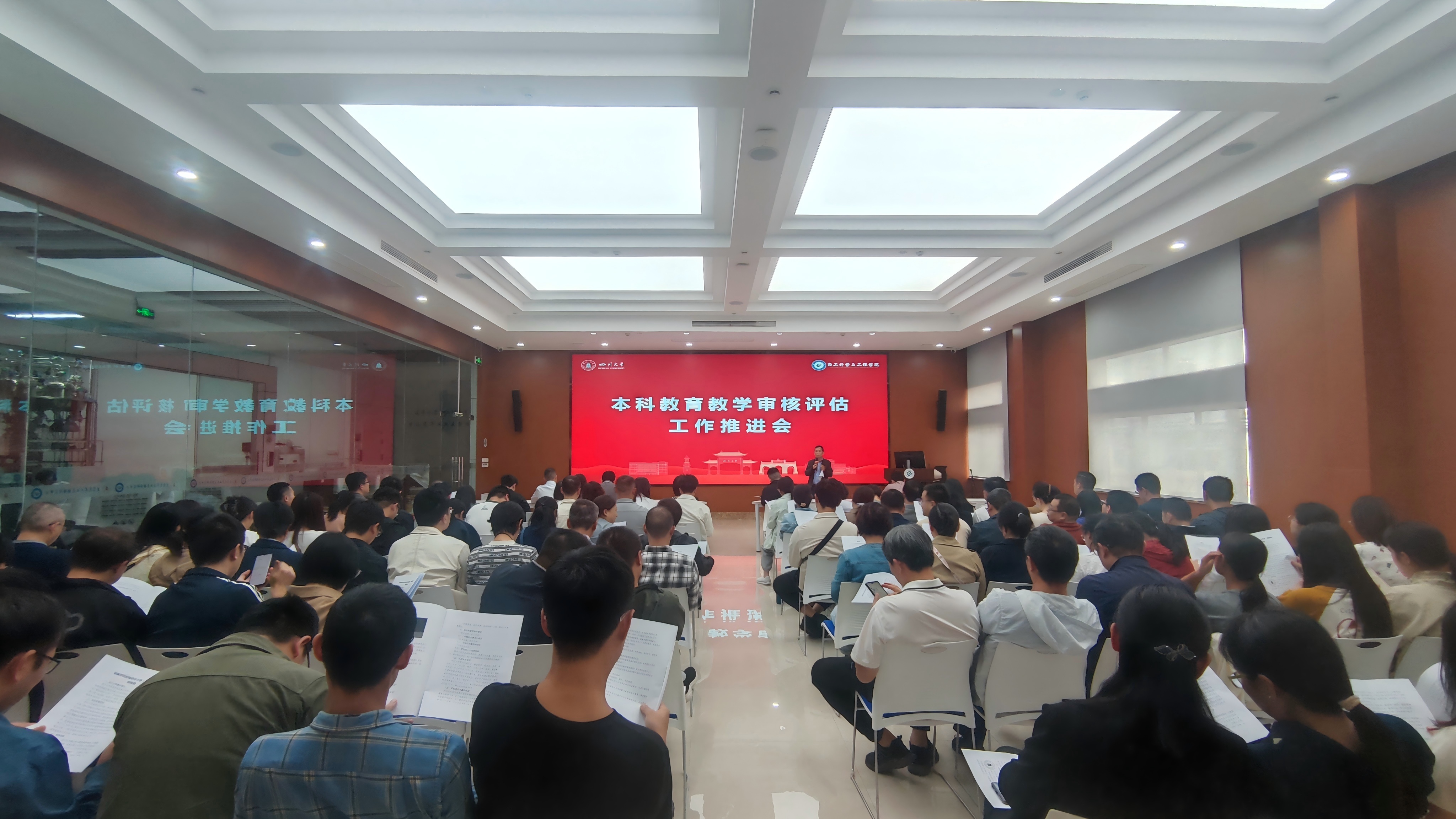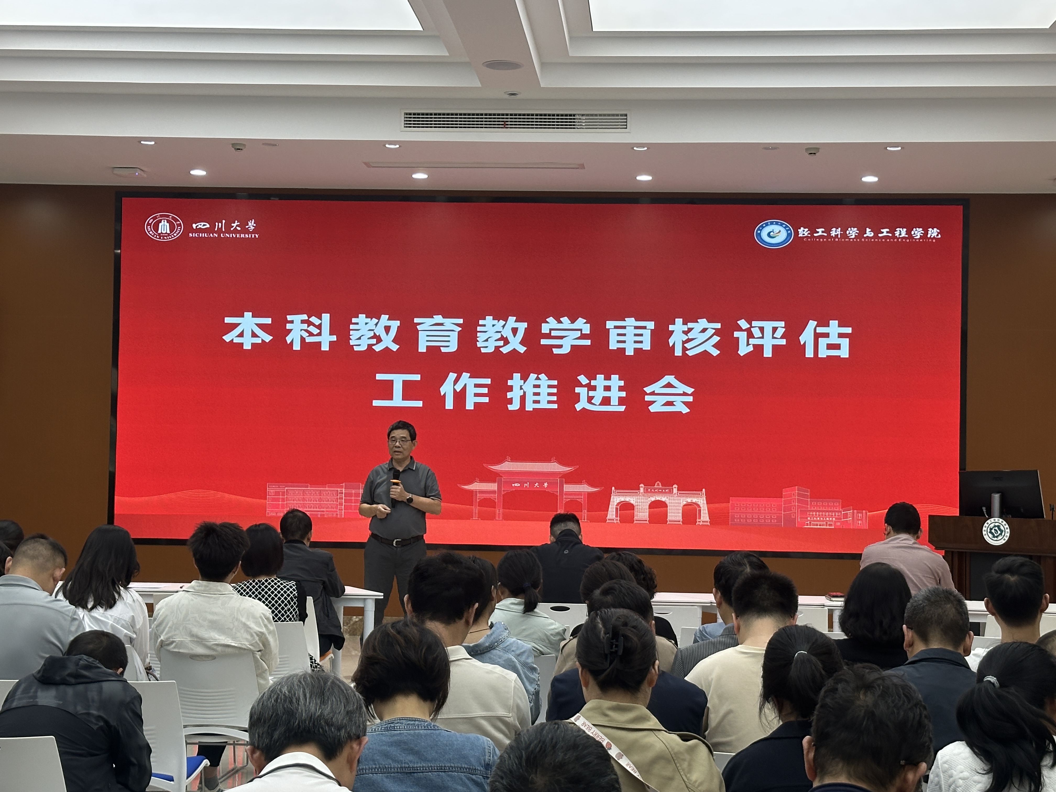 在望江校区皮革楼工业互联网中心召开本科教育教学审核评估工作推进会。会议紧扣核心要求,旨在进一步压实迎评责任、细化工作举措,确保学院各项迎评准备工作高效落地。学院领导班子成员、全体教职工参会。会议由学院党委书记李天富主持。