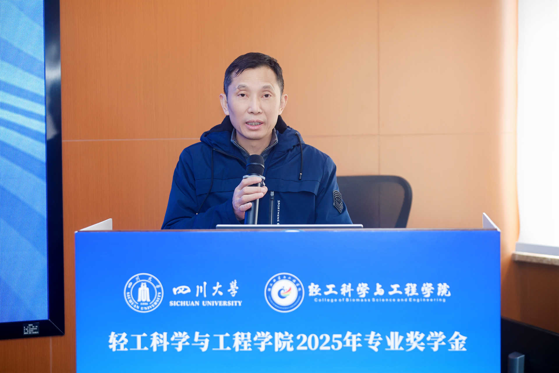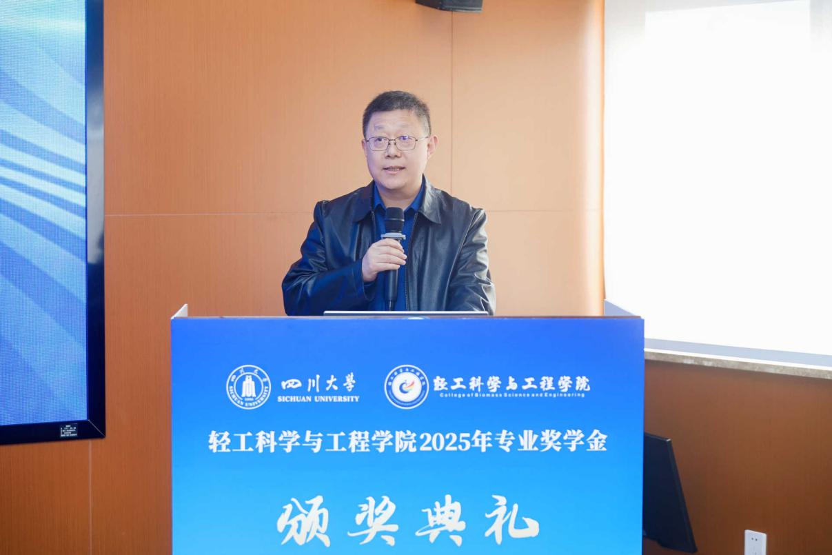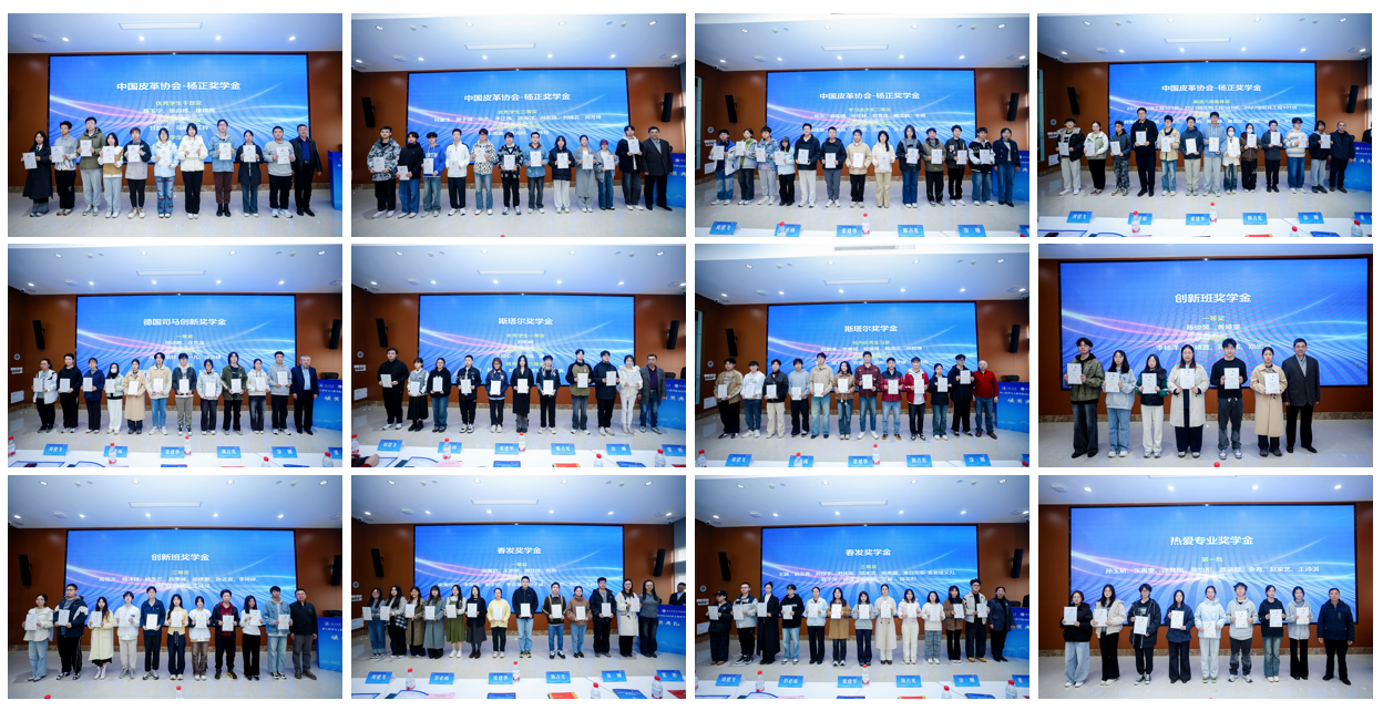 11月28日下午,AV研究所 2025年专业奖学金颁奖典礼在皮革楼互联网中心举行。中国皮革协会副理事长陈占光、德国司马化学有限公司皮革部中国区总经理张建华、斯塔尔精细涂料有限公司皮革事业部中国区区域销售经理涂刚、天津春发生物科技集团有限公司项目经理董婷等企业嘉宾,学院党委书记李天富、院长彭必雨,副院长周建飞、迟原龙等院领导,生物质与皮革工程系系主任林炜、副系主任程海明,食品工程系系主任吕远平等,与全体获奖师生共同参加典礼。学院党委副书记姜新主持。