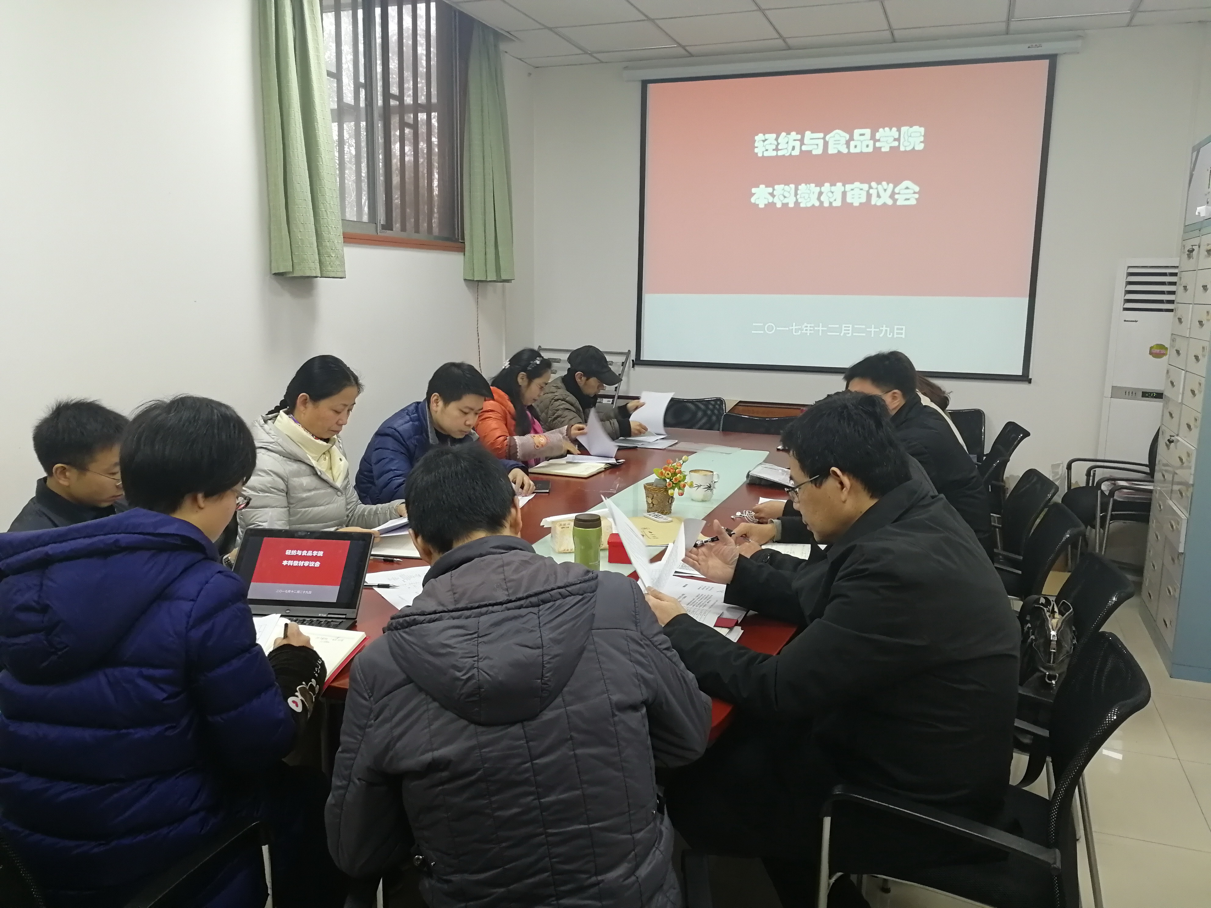 2017年12月29日上午11点,学院本科教材审议会议在纺工副楼201会议室召开。会议由教学副院长彭必雨教授主持,学院教材建设及选用审核工作组组长刘晓虎书记、何有节院长,成员冯国涛院党委副书记、各系系主任、副系主任、教研室主任出席了此次会议。会上,刘晓虎书记介绍了《轻纺与食品学院教材建设管理办法(草案)》,管理办法主要由组织机构、教材的选用和立项建设教材的评选推荐及管理三部分组成。并对教材提出三点要求,一是除实践课程外,课程必须有教材支撑;二是自编讲义使用年限不能超过两年;三是优先选用高水平教材。彭院长重点强调,加强对教材使用计划的审核,防止不符合教育教学要求的低水平教材或讲义进入课堂,杜绝有意识形态问题的教材和讲义进入课堂。何有节院长也鼓励教师们积极申报AV研究所