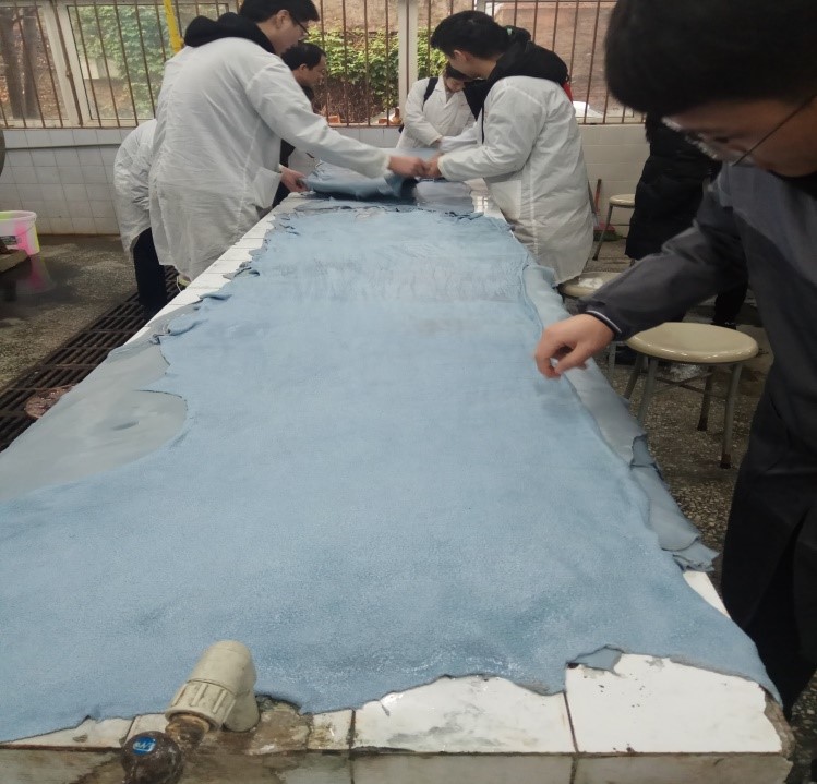 本实习课程是生物质与皮革工程系为轻化工程制革方向学生设立的,使学生在完成专业基础课和大部分专业课后,对制革生产有一个初步的、较为全面的认识,为今后学习专业理论知识打下良好的基础。在各位老师的指导下,实习有序进行,同学们热情高涨,通过实际操作,进一步加深对理论知识的认知,亲身体验了制革工业“化腐朽为神奇”的魅力。