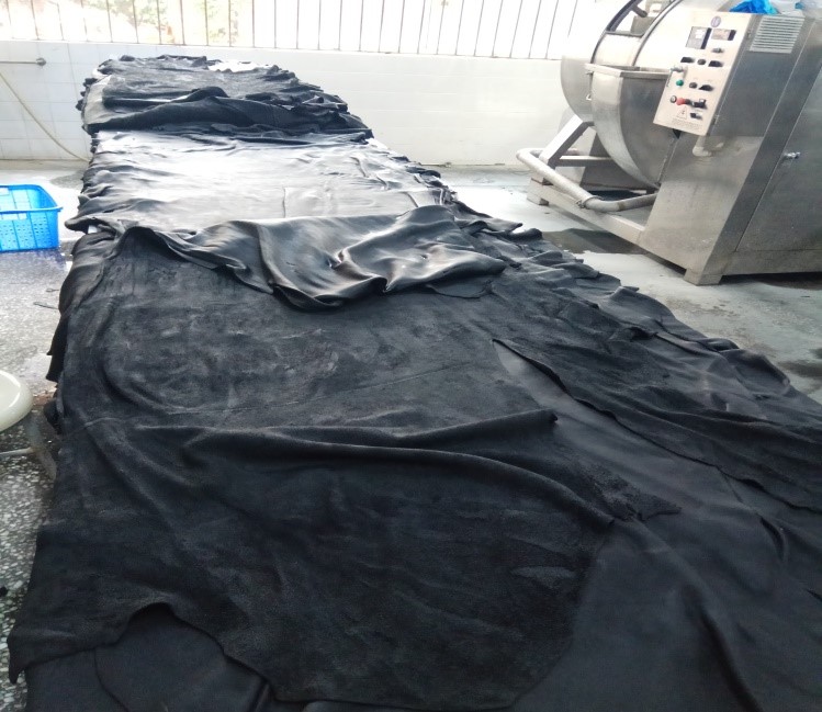 湿加工工段结束后得到的坯革,是老师和同学们两周工作的成果。