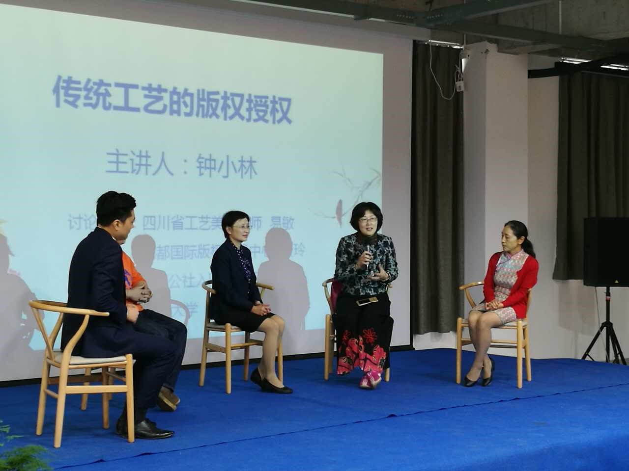 蜀绣蜀锦研发实验室赵敏老师与成都国际版权交易中心总经理黄玲,四川省工艺美术大师易敏老师等专家一起现场分享了经验、提出了建议。