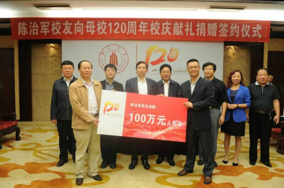 94级校友、徐州鸿丰高分子材料有限公司董事长陈治军先生向母校捐款100万元,用以支持学校学科发展和科研建设。