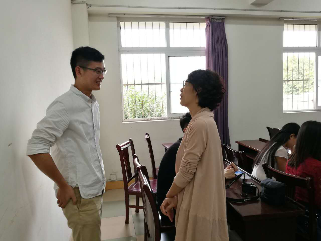 各届校友、教师以及在校研究生、本科生们自由探讨,愉快交流。再次看到那些熟悉的面孔,那些熟悉的教室,那些熟悉的桌椅,与学校阔别多年的的校友们,有说不完的话想要对曾经的老师、曾经的同窗倾诉。在活动的最后,校友们和老师们齐聚在学院纺工楼前合影留念。