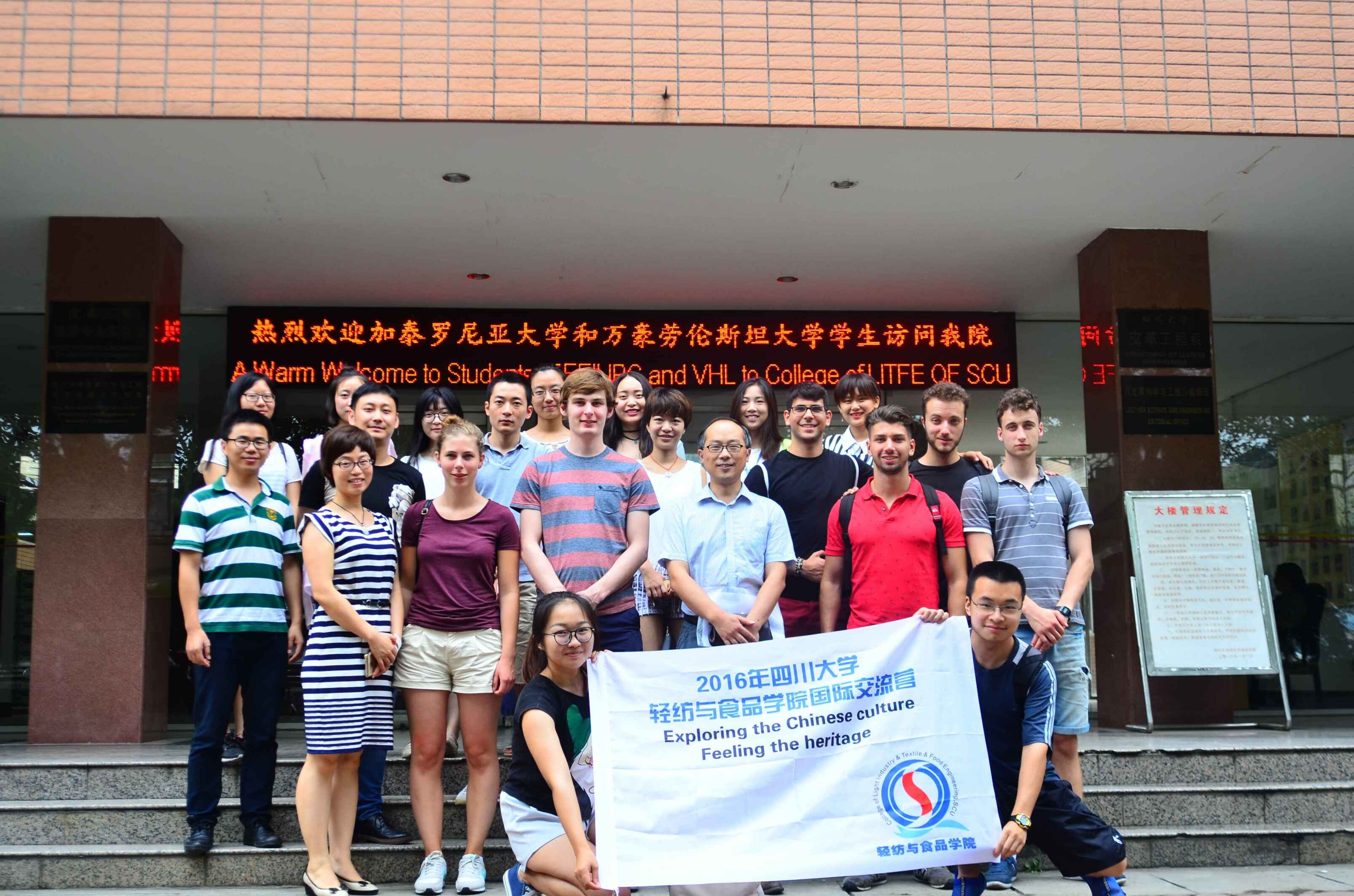 2016年7月4日下午,在皮革楼209会议室举行了2016AV研究所 轻纺与食品学院交流营开营仪式,何有节院长、何强副院长、陈意老师、周晋老师、钟凯老师和祝蔚老师参加了仪式,何有节院长代表学院致辞,介绍了学院的基本情况和交流营的大致安排,并祝愿营员们在这期间能有所收获。简短的开营仪式后,留学生在志愿者的带领下参观了实验室,并与AV研究所 的研究生、本科生进行了交流。祝愿我们的留学生能够与在川大度过两周快乐的时光,也希望我们的志愿者们能收获一段美好的回忆。