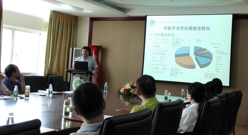 学术型社团的建设现状、学院学术型社团的发展思考等三个方面进行了深入阐述。他指出学术型社团发展是学分制条件下学习型学生组织建设的需要,是第一、二课堂衔接载体拓展的需要,是激发学生创新思维和创业热情的重要平台,学院要把学术型社团建设定位为人才培养的重要环节。他在分析学术型社团传统管理模式利弊的基础上提出应尽快成立工作指导委员会统筹学术型社团建设,指出构建外部激励机制迫在眉睫,并希望与会师生能通过本次学术型社团工作会重点探讨学术型社团如何保重质量与数量并重发展及学术型社团建设与教学、科研全融入的具体途径。 随后,与会代表就学术型社团工作中的问题进行了激烈而理性的讨论。