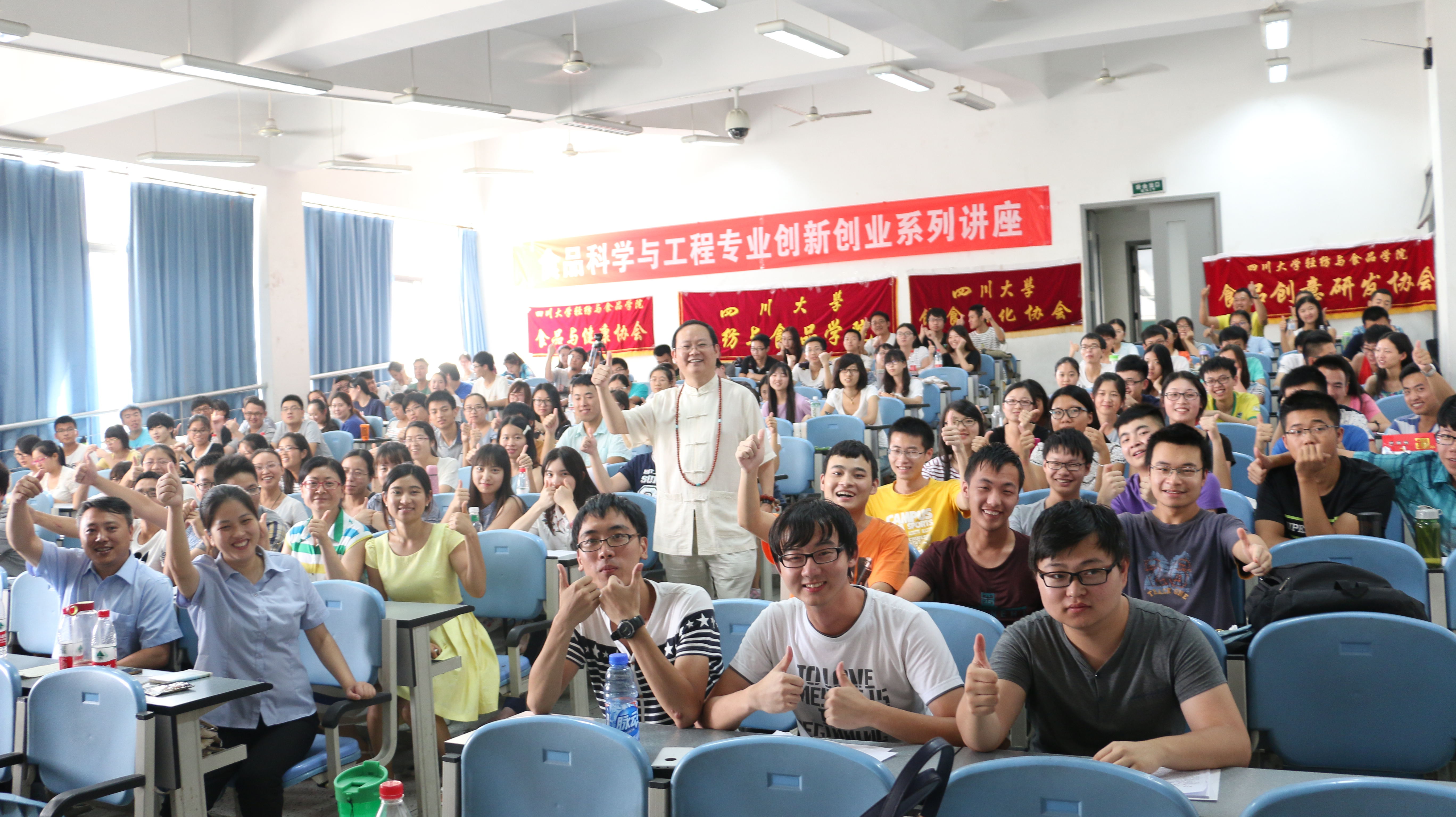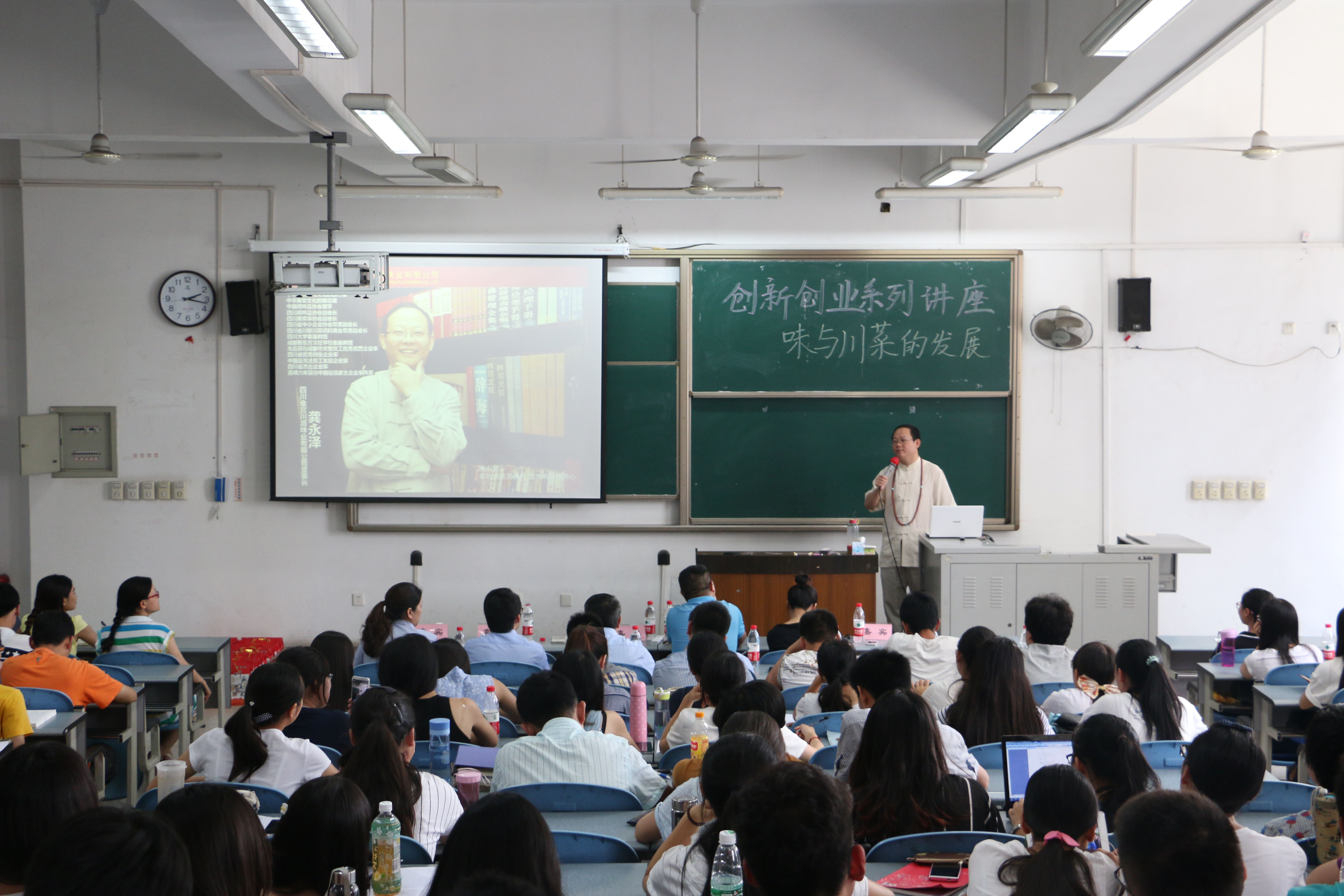 江安校区综合楼C座303教室圆满举行。本次讲座由轻纺与食品学院团委学生会主办。到场嘉宾有,四川金宫川派味业有限公司总裁兼四川省调味品协会副会长、川商理事会主席团主席龚永泽先生及随行管理团队,四川江中源食品有限公司总经理潘亮先生,成都市盈宇食品有限公司董事长助理代殊同女士,轻纺与食品学院食品工程系副系主任贾丽蓉副教授及轻纺与食品学院李欣蔚老师。贾丽蓉副教授首先为本次讲座致开场辞。接下来,龚永泽先生发表了幽默风趣但却发人深省的讲话。演讲中,龚永泽先生首先从自身经历着手,提醒同学们要学会感恩,怀着一颗敬畏之心做人、做事、做食品。龚永泽先生说,从吃得饱到吃得好到吃出品味和文化,食品企业也在不断地改革和提升。民以食为天,挖掘食材的内在潜力,提升食品的多样性及在新领域的应用已经成了食品创新发展的主流方向,而这其中,川菜又以其包容、创新、百菜百味的特点,成为佼佼者。一个品牌是由品味、品德、品质三部分组成,龚永泽先生强调,在打开食客味觉的同时,坚守自己的原则,用心做出好的味道,才是食品行业的正道。最后,同学们就自己在食品学习过程中的遇到的疑问提出了问题,龚永泽先生一一予以耐心的解答并为大家派发了礼品。合影留念后,为期三个小时的讲座圆满结束。本次讲座使同学们对食品行业的现状及发展前景有了一个更深入的认识,在为食品专业同学授业解惑的同时,也让外专业同学受益匪浅。在食品问题层出不穷的当代社会,唯有保住一颗本心,味的发掘和发展才有意义。