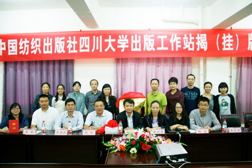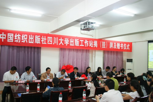 望江校区纺工楼321室如期举行。中国纺织出版社总编辑李炳华,服装图书分社副社长张晓芳,图书营销中心副主任杨旭一行六人,及轻纺与食品学院党政领导,纺织服装等专业的教师、研究生共计30余人参加了此次活动。仪式由兰建武副院长主持,何有节院长代表轻纺与食品学院致欢迎词,赵毅书记与李炳华总编合力完成工作站的揭牌,肖凯副院长代表学院接受了出版社的赠书,最后由出版社李总编向工作站负责人颁发了工作站聘书。至此,“中国纺织出版社AV研究所