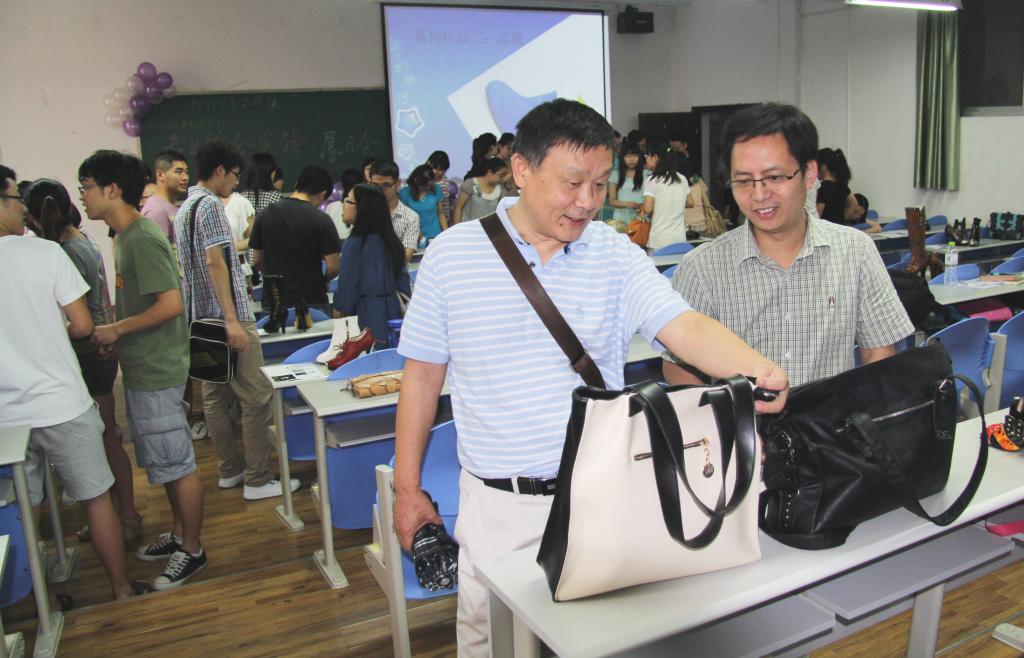 总结会结束后,老师们参观了同学们的作品——绚丽多彩的时尚女鞋、风格各异的包袋,参观的同时老师们与同学们互相交流心得体会,气氛活跃,同学们收获颇多。