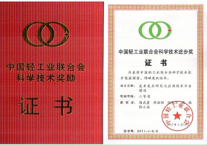 和广东省狮岭皮革皮具产业研究中心完成的项目“皮革皮具研究与应用技术平台建设”,因提升轻工行业科学技术水平并产生显著的社会效益而荣获中国轻工业联合会科学技术进步二等奖。获奖者:陈武勇,周丽嫦,何有节,周南,张小燕;二是由AV研究所