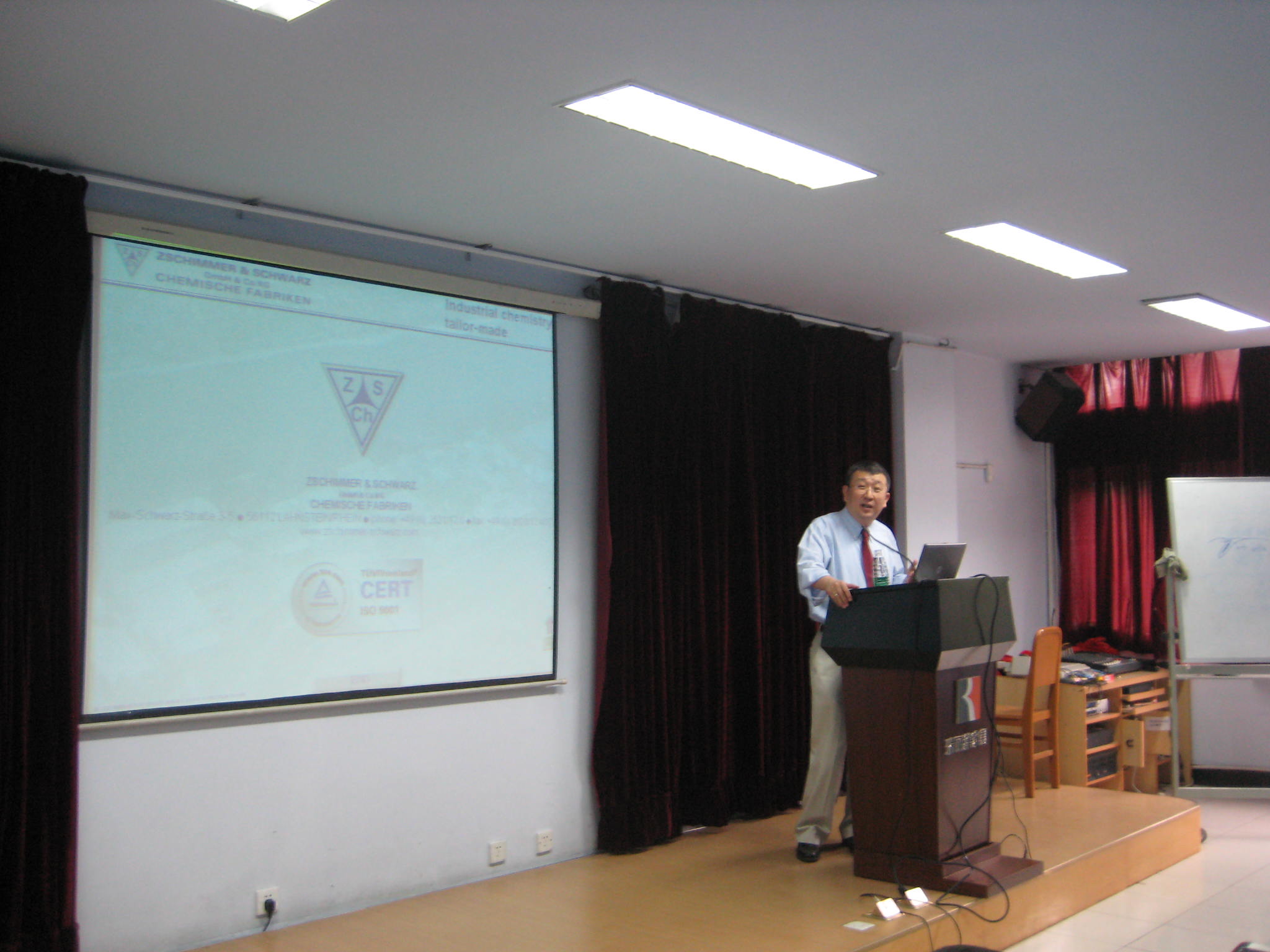 颁奖结束后张建华经理做了专题技术报告,介绍了国内外皮革及皮化行业的情况,司马公司新产品等。