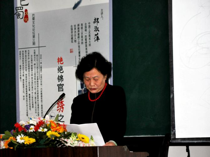 研究生会主办,轻纺与食品学院研究生分会、轻纺与食品学院纺织工程教研室承办,历史文化(旅游)学院研分会、华西药学院研分会协办的第三期巴蜀文化论坛于4月16日晚19点在研究生院1-102j举行。本次论坛的主题是“艳绝锦官,绣之美”专题学术讲座,介绍独具巴蜀文化特色的“蜀绣文化和技艺”。轻纺与食品学院纺织工程教研室特别邀请到了中国工艺美术大师、全国唯一的蜀绣国家级传人、世界艺术杰出名人、全国劳模、全国三八红旗手郝淑萍大师主讲。本校众多研究和关注蜀绣文化及技艺的博士生、研究生、本科生聆听了郝淑萍大师的精彩演讲,轻纺与食品学院老师以及诸多社会人士也慕名莅临了此次论坛。 郝大师为本次论坛做了很高学术水平的演讲,她从蜀绣的起源开始,娓娓讲述了蜀绣的发展和历史变迁,尤其历数了解放后蜀绣在党和国家的关怀下从频临灭绝到蓬勃发展的各个历史性阶段;郝大师也痛心的谈及了文革期间蜀绣遭受的毁灭性破坏。在郝大师历时两个多小时的演讲中,我们更感受到了她对蜀绣的不懈追求和希望蜀绣能更好传承、发展的殷切期望。郝淑萍大师13岁开始学艺,从事蜀绣工作50年,她手上的针线见证了蜀绣的兴衰与变迁。在蜀绣被列为“非物质文化遗产”受到各方关注的今天,年过花甲的郝淑萍大师对蜀绣的传承和发展充满了信心:“国家重视,公众认同,市场开放,对我们这些从艺人来讲,传承老手艺千载难逢的机会到了”。此行郝大师不计报酬到学校演讲不但为了传播、宣传蜀绣,她更希望吸引学校中高学历、高素质人才加入蜀绣的队伍,使蜀绣这一古老技艺在新的环境下能更高更好的传承和发展,她的渴望和召唤令同学们感动。 芊芊手执绣花针,带着五彩丝线于软缎丝绡上翩翩起舞,蜻蜓点水般轻盈的刺绣,好似优雅的芭蕾。这一特殊的“芭蕾”,郝淑萍已经跳了整整50年。她的辉煌艺术成就引来阵阵惊讶和赞叹!演讲中郝大师展示了她和她的学生们创作的一幅幅美轮美奂的、代表蜀绣纹样和针法特色的作品:《芙蓉鲤鱼图》、《九寨沟大熊猫图》、《瑞照丰年》、《卓文君》、《峨眉杜鹃》、《昭君出塞》、《仕女打马球》…无论是缤纷的单面绣还是神奇的双面绣和奇异的异形异色绣,幅幅堪称神奇,无不令师生们叹为观止。 郝大师还针对同学们的提问对最代表蜀绣特色的二三针、全三针、锦纹针等针法进行了详尽的讲解。郝大师的演讲深深吸引着在座的每一位师生,她的演讲不时引起热烈的掌声和阵阵的惊叹,整个讲座座无虚席。不少同学认真记录着笔记,演讲结束后同学们还不愿离去,争相与郝大师交流讨论。一个同学感叹“早就该举行这样的讲座了”。此次演讲产生的热烈反响必将更好的促进我校尤其是轻纺食品学院的教学科研,也使每位在场的听众对中国四大名绣之蜀绣有了更深刻的认识与了解,为蜀绣传播推广起到良好的作用。 本次演讲得到了轻纺学院领导的肯定和支持,也得到四川省工艺美术协会的大力支持。