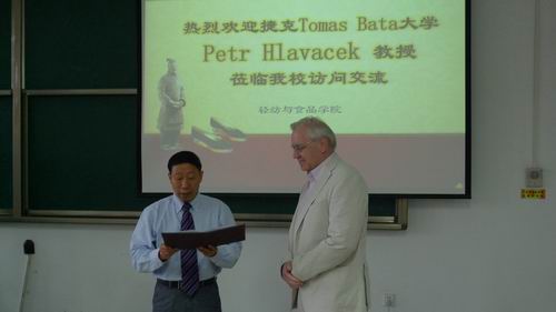 轻纺与食品学院客座教授聘任仪式暨“生物力学在欧洲鞋类研究和设计的进展”知识讲座圆满举办 5月31日,轻纺与食品学院客座教授聘任仪式暨“生物力学在欧洲鞋类研究和设计的进展”知识讲座于江安综合楼C404成功举办,主讲人为捷克Tomas Bata 大学技术学院院长Petr Hlavacek教授。轻纺与食品学院院长陈武勇教授、革制品教研室主任徐波老师以及轻纺与食品学院团委副书记苏德强老师作为嘉宾参加了本次讲座,此外活动还有幸邀请到多家成都制鞋名企的企业家代表。 Petr Hlavacek教授现任捷克鞋类及皮革协会副主席、UNIDO(联合国工业开发组织)鞋类组国际专家等多个职位,并在糖尿病患者预防鞋类的开发与制作以及最古老的欧洲鞋考古研究与复制等方面都有丰硕的科研成果。 活动开始,陈武勇院长郑重向Petr Hlavacek教授颁发AV研究所