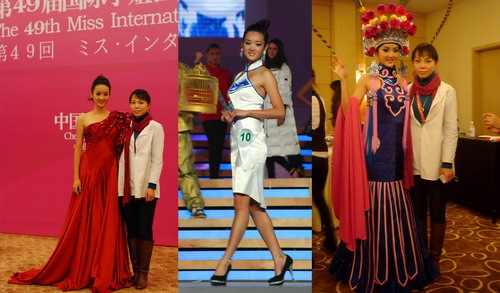 轻纺与食品学院的时昱老师参与了作为世界三大选美盛典之一,号称“选美中的奥林匹克”的第49届国际小姐世界大会总决赛的服装统筹设计工作,其作品太阳神鸟青花旗袍作为66个国家佳丽的颁奖礼服出现在绚丽而充满成都元素的国际小姐总决赛的舞台上(图1)。决赛最后环节,在成都老茶馆特有的“茶博士”带领下,66个佳丽身着寓意金沙文化的白底青花纹样的旗袍造型再次登场,风姿卓越,款款盈动。此次的青花神鸟旗袍,分为四个不同款式,白色的主色调纯净安宁,加上古蜀文化中著名的金沙太阳神鸟图案,十分抢眼。由此,佳丽们所穿的青花神鸟旗袍也被定义为“成都式样”( 图2)。 除此以外,时昱老师还负责设计了中国小姐王芊的民族服装设计、泳装、晚装及青花旗袍设计(图3)。其中民族服装里,在结合王芊极具东方的气质基础上,注入了大量的中国元素,但又不失国际风采;凤仙领,中国蓝,如意纹样,西式裁剪与露肩礼服,大气的外观加上穆桂英扮相,给中国小姐王芊带来了飒爽英姿的戏剧造型及俏丽的色彩与装扮(图4、图5);晚装秀中,因为王芊的体型娇小,所以在服装设计中加以了大型的不对称荷叶灯笼袖设计,悬垂的皱褶与中国红把中国小姐王芊衬托得更具国际韵味(图6)… 时昱老师在本次活动中,从接到任务开始,经过构思、具体的工艺解决到最后的舞台展示,时间紧迫,工艺难度大,所有服装的整个设计与制作过程历时仅短短一个多月。当身着青花旗袍的冠军墨西哥小姐、亚军韩国小姐与季军英国小姐的合影被传向全球的时候,让所有辛苦的过程换成这值得纪念的瞬间(图7、图8)。 本次活动里,时昱老师还带领了一个服装专业的学生团队,除了以实践行为参与这样一个国际赛事以外,还让学生可以近距离观摩了解世界各国服装的风采与特殊工艺,以及较清晰感受这样的国际赛事的操作流程,让同学们也在本次活动的工作中有了极大的收获(图9)。作为66个国家颁奖服的4款青花旗袍将被收藏于轻纺与食品学院的服装展示厅中。 (Lanjw)