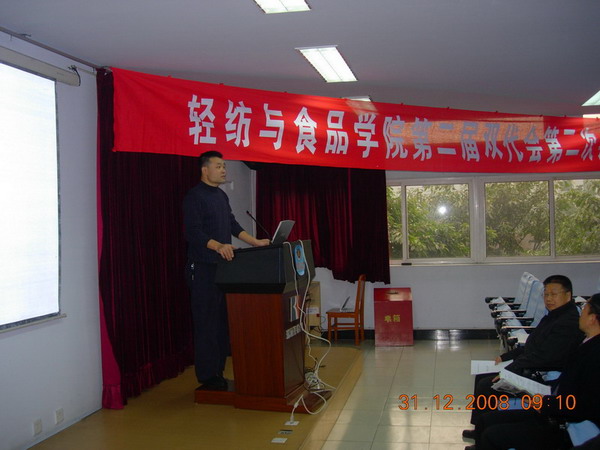轻纺与食品学院第二届双代会第二次会议隆重召开 2008年12月31日,轻纺与食品学院第二届双代会第二次会议隆重召开。学院双代会代表和特邀代表出席了此次会议。学院党委书记刘学文教授代表学院党政向全院教职员工表示最亲切的慰问和最崇高的敬意!并致以良好的祝愿!预祝大会取得丰硕成果,圆满成功!希望全院教职员工携起手来,紧紧围绕学校的中心工作,认真贯彻落实“十七大”精神,高举旗帜,坚定不移地解放思想、深化改革,在科学发展观的引领下,以创新精神加强和改进党建思想政治工作为保证,以提高质量为核心,以人事分配制度改革为龙头,以改革创新管理体制和运行机制为重点,以调整优化配置资源为抓手,坚持全心全意依靠教职工办学的基本方针,促进学院各项工作又好又快的发展,再上新台阶,为实现AV研究所