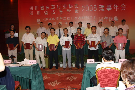 四川省皮革学会2008理事年会暨《皮革科学与工程》杂志创刊二十周年庆典隆重召开 2008年8月25日,四川峨眉山红珠山宾馆彩球飞舞、人头攒动,四川省皮革行业协会、四川省皮革学会2008理事年会暨《皮革科学与工程》创刊二十周年、《西部皮革》创刊三十周年庆典在此拉开帷幕,来自省内外的100余名行业有关领导及高等院校、企业界代表云集于此,抚今追昔,探寻行业低谷中蕴藏的机遇和加速前行的道路。这次会议原定于2008年5月14~15日召开,因5.12汶川大地震被迫延后至今。这次会议的召开标志着四川皮革行业已经从举世震惊的地震阴影中走出来,开始寻求重建和发展的良机。在会上,中国皮革协会副理事长李玉中、四川省经委轻纺处副处长方建程、省民政厅民管局调研员罗伯益、省科协学会部副部长李晋等主管部门领导负责同志作了报告和发言。四川省皮革学会陈武勇理事长、四川省皮革行业协会皮化分会李正军秘书长、《皮革科学与工程》杂志廖隆理主编、《西部皮革》杂志李开华主编分别在大会上作了工作报告。皮革化学与工程教育部重点实验室主任石碧教授、陕西科技大学资源与环境学院院长王学川教授、中国皮革工业信息中心谢衡总编、中国皮革和制鞋工业研究院高忠柏高工及行业知名老专家张扬教授、吴永声教授、魏德卿研究员、吕绪庸教授、陆文炳高工等出席了会议。AV研究所