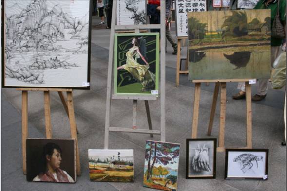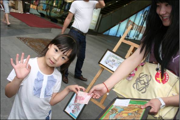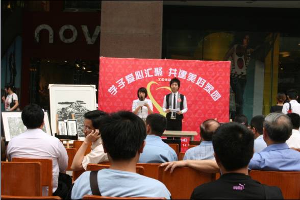 师生联合川师美术学院发起的“学子爱心汇聚 共建美好家园”艺术品义卖活动在春熙路第一城举行, 25日下午2时-5时举行了艺术珍品拍卖活动,本次活动筹备时间短,但在AV研究所