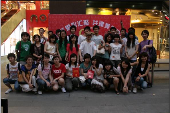 教师赵武、冯洁与川师的2名教师自发牵头组织,联系义卖场地、捐献省慈善总会等义卖活动相关事宜。 在5月22日周四的课堂上,当05级服装班的同学听到这次义卖活动需要筹集更多的美术作品时,立即积极响应,分组行动,承担起这次义卖活动的主力军,当晚即到江安校区组画,除了AV研究所