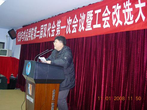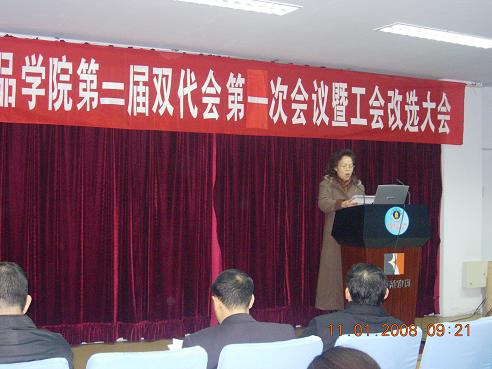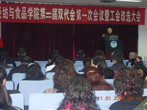 轻纺与食品学院第二届双代会第一次会议及工会改选大会胜利召开 2008年1月11日,轻纺与食品学院召开了第二届双代会第一次会议及工会改选大会,学校工会主席蒋润书,副主席蒙慧玲、唐宏光,民主建设科科长黄伟参加了会议。校工会主席蒋润书代表学校工会祝贺AV研究所