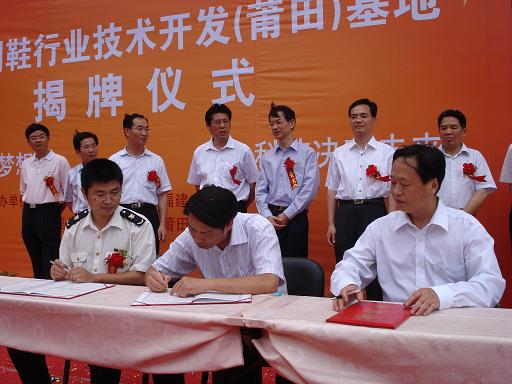 轻纺与食品学院、福建制鞋行业技术开发(莆田)基地、国家鞋类检测中心本着互惠互利、优势互补的原则,建立检学企合作机制,在科研合作、技术培训、人员交流、技术交流以及实验室建设等方面开展合作:三方共同承担科研课题,联合组织面向制鞋企业的技术培训,在条件成熟的情况下,将在莆田成立培训学校,开设制鞋设计、制造、检测等专业课程;聘请学院专家担任国家鞋类中心和基地的顾问进行技术指导;中心、基地作为AV研究所
