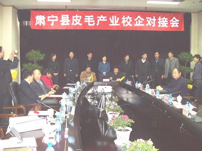 皮革工程系教师参加肃宁校企对接活动2007年1月6-7日“肃宁县皮毛产业校企对接会”在肃宁华阳大酒店举行,轻纺与食品学院生物质与皮革工程系教师骆鸣汉、陈彦和何有节参加了会议,陕西科技大学资源与环境学院院长王学川教授、天津工业大学滑钧凯教授等10余名专家教授,肃宁县28家皮毛企业代表,共计68 人参加了会议。肃宁县政府副县长耿树凯主持了对接会开幕式。肃宁县科技局局长刘会昌主持专家新成果发布及企业与院校洽谈活动。沧州市科技局局长王亚俊、县委常委、常务副县长郭万义参加了会议并致辞。与会专家学者首先在对全县皮毛加工企业发展状况和技术水平进行现场考察,在会议上分别就皮毛业发展趋势、克服欧盟“绿色壁垒”、裘革硝染新工艺、减少和消除废水污染、降低产业成本提高加工品质等专题进行了演讲,同时发布新技术、新成果62项。经过洽谈磋商,达成技术合作协议10项、合作意向3项。轻纺与食品学院副院长何有节代表川大与肃宁县签定了《肃宁县人民政府与AV研究所
