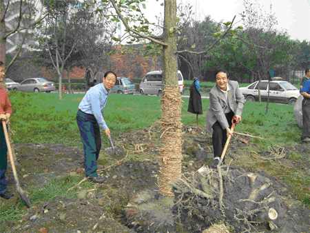皮革校友捐赠“校友林” 在AV研究所 大学110周年校庆活动中,部分皮革校友筹集了“校友林”资金,专门用于在皮革楼前植树造林,美化校园环境。10月9日,这项工作已得到落实。73级校友陈武勇、李开华,75级校友王坤余,78级校友张宗才、陈彦,85级校友戴红等代表众多校友,在皮革楼前亲手种植了珍稀树种--银杏树。银杏树虽历尽沧桑,依然顽强生长,表现出旺盛的生命活力;银杏树茂盛多果,象征着我们的教育事业硕果累累、学子满天下。(陈玲)