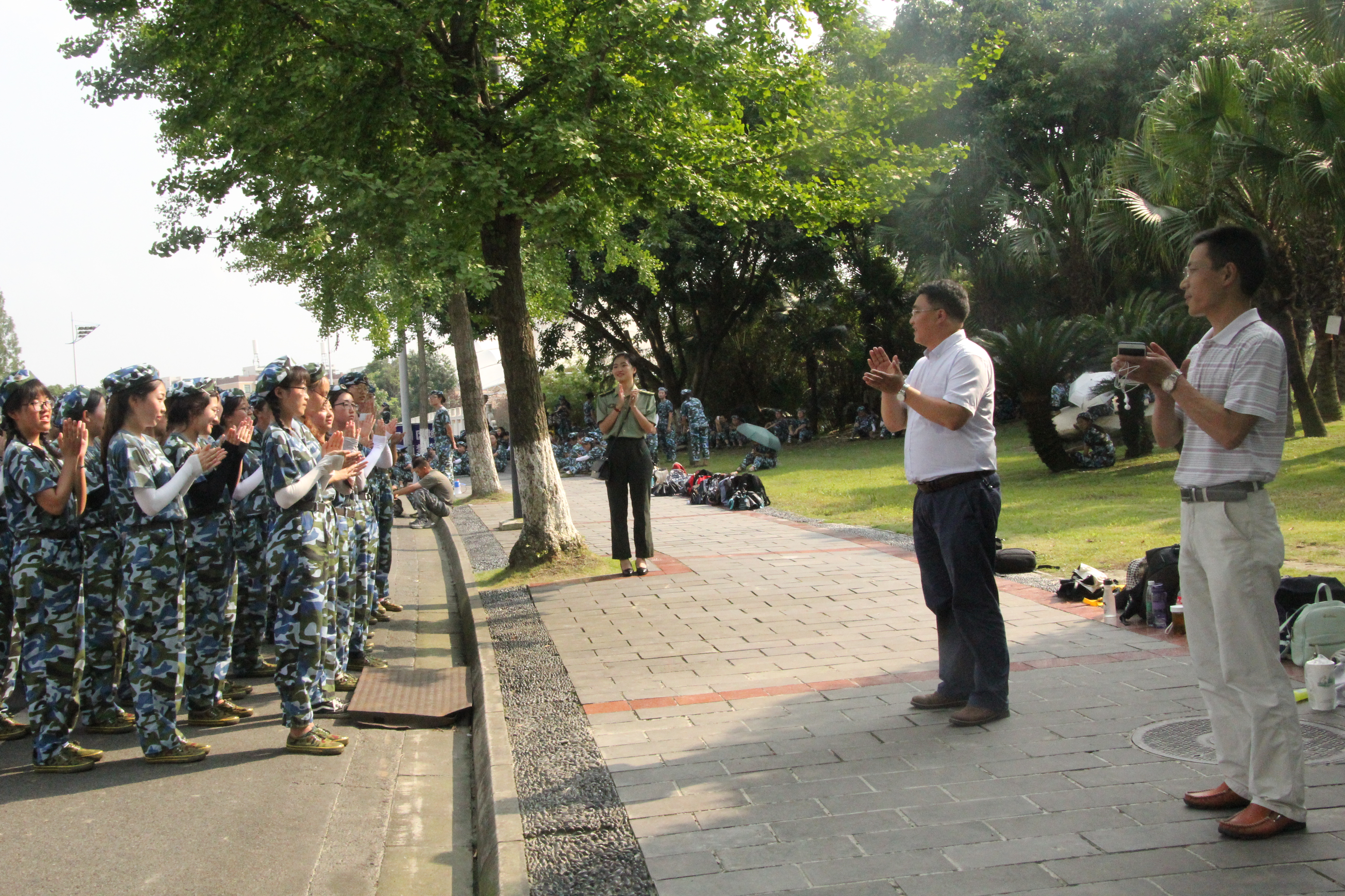 江安校区,看望和慰问承担学院2017级军训任务的全体教官及全体参训学生。参与慰问的领导有,轻纺与食品学院党委书记刘晓虎副教授、党委副书记冯国涛老师,同时,2016级辅导员王舒灏老师、2017级辅导员李杨老师也参与了本次慰问。