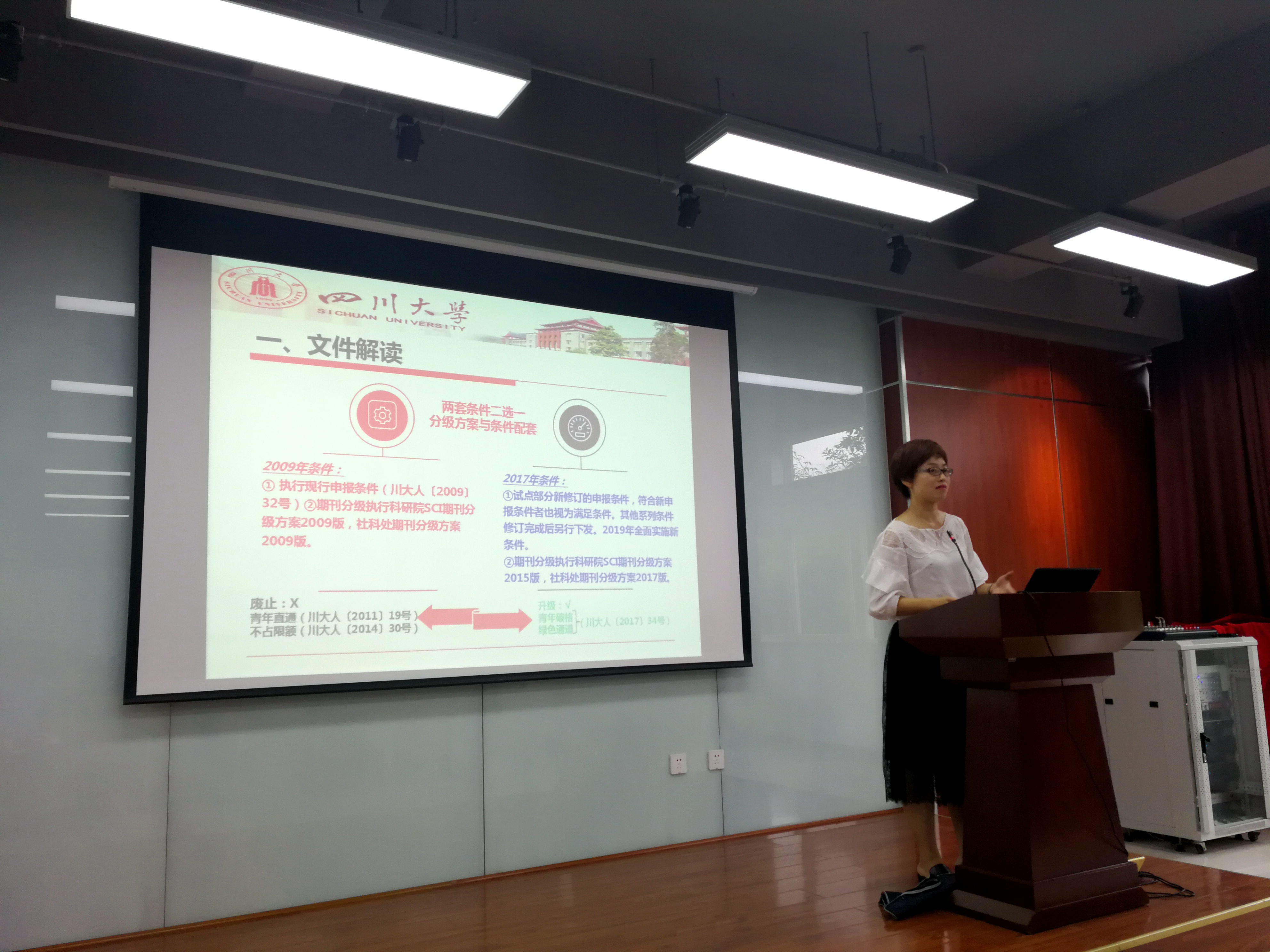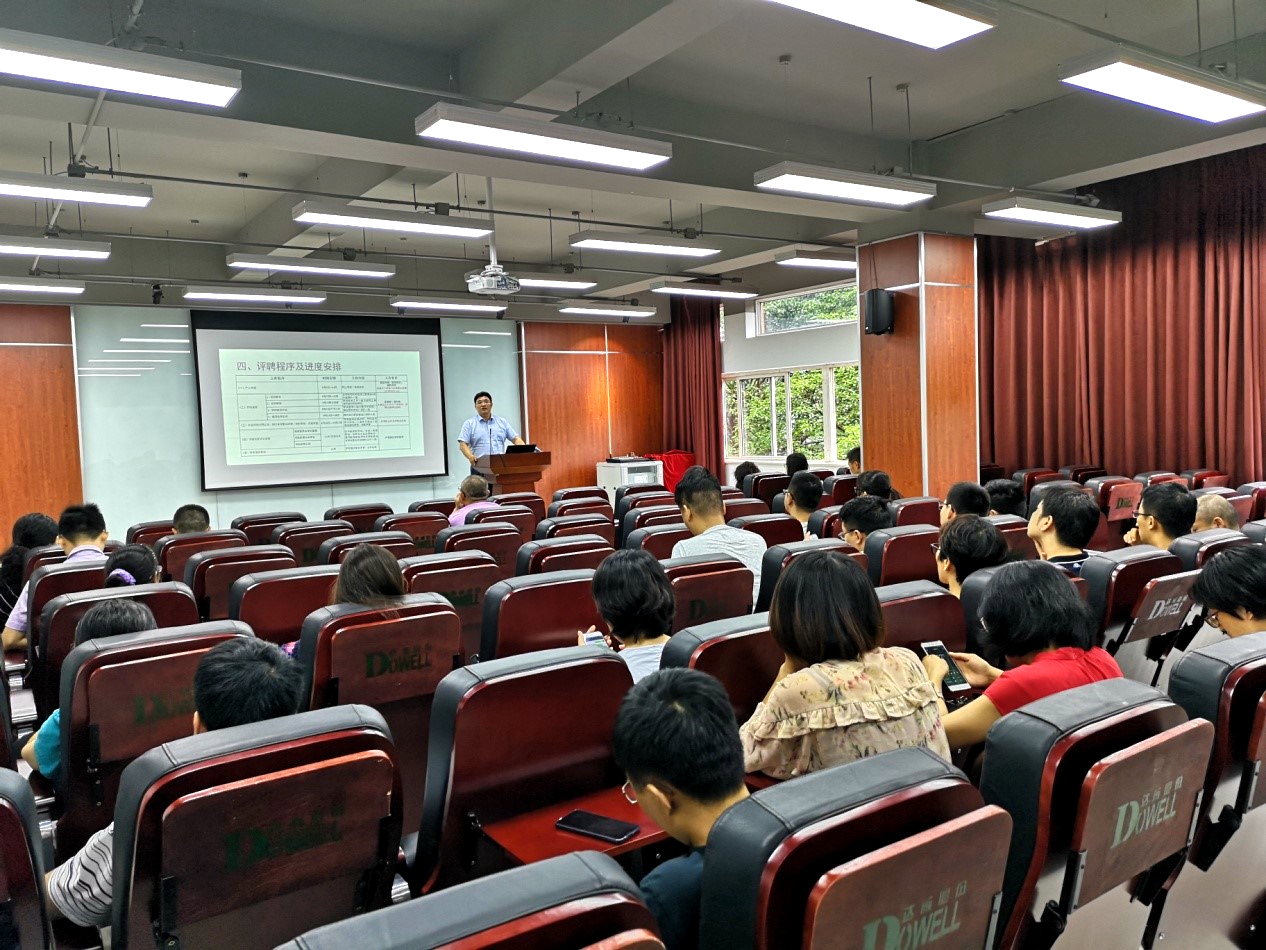 2018年9月5日下午,学院在皮革楼报告厅举行了本年度专业技术职务评聘工作宣讲会,宣讲会由刘晓虎书记主讲,关心职称晋升的教师、学院评聘小组和推荐小组成员、教学秘书、科研秘书、研究生教务员等参加了会议。
