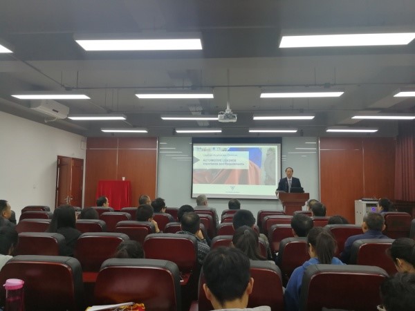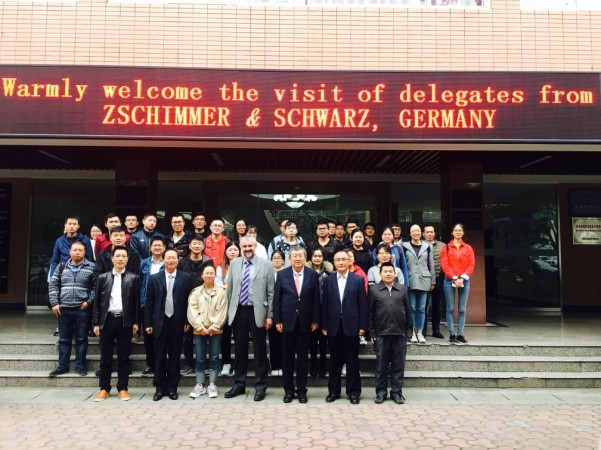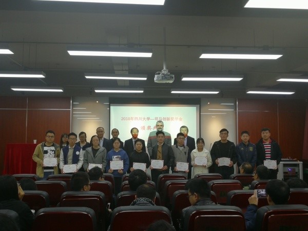 -司马创新奖学金颁奖典礼在轻纺与食品学院皮革楼报告厅隆重举行。德国司马化学公司研发部经理Francke博士、司马化学公司首席代表/皮革部中国区张建华总经理、皮革部技术代表滑洪臣工程师专程到川大参加颁奖典礼。
