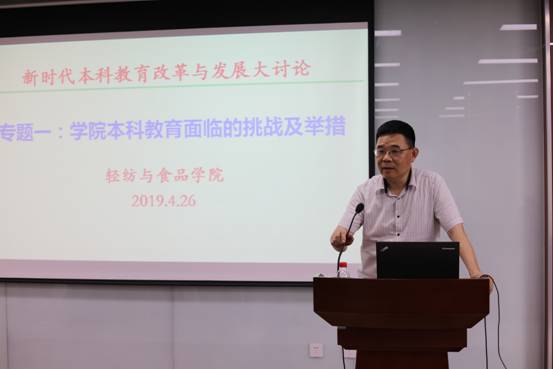 2019�4�26日下午,学院在皮革楼215报告厅,成功举办首期改革发展论坛——本科教育改革与发展大讨论及“双创工作”布置会,全院教职员工参加了本次大会�