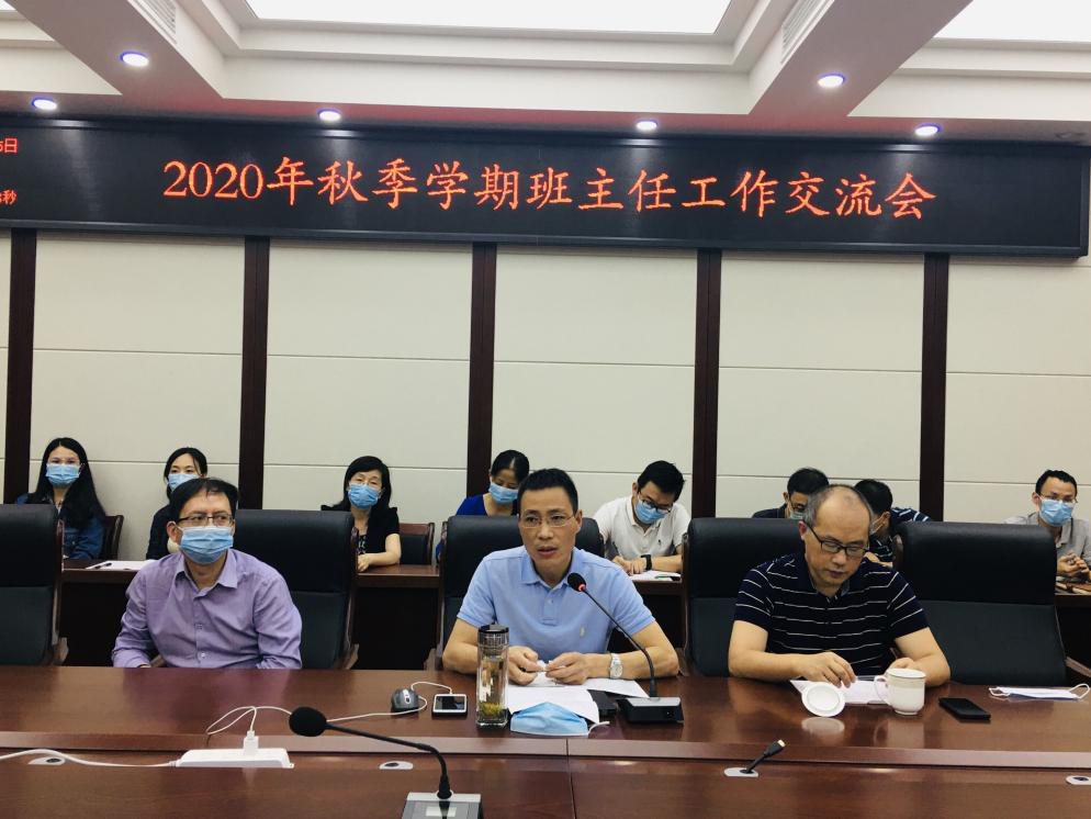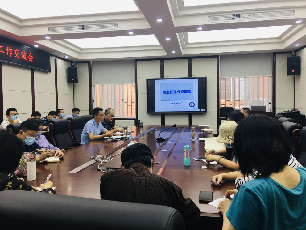 在纺工附楼205会议室召开2020年秋季新学期班主任工作交流会,冯国涛副书记、彭必雨副院长、祝蔚院长助理、学生事务办公室主任贺婷老师以及各年级辅导员、班主任、本科教务老师共计40余人出席会议。会议由冯国涛副书记主持。