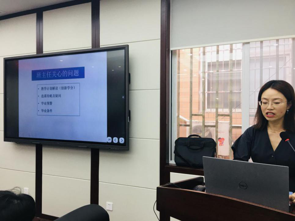 人才培养与科研办公室主任祝蔚院长助理就各年级的教学计划、选课指导中的注意事项、学籍管理规定以及毕业资格审查等本科教学重点环节进行分享和介绍,以便班主任能对学生进行精准指导。