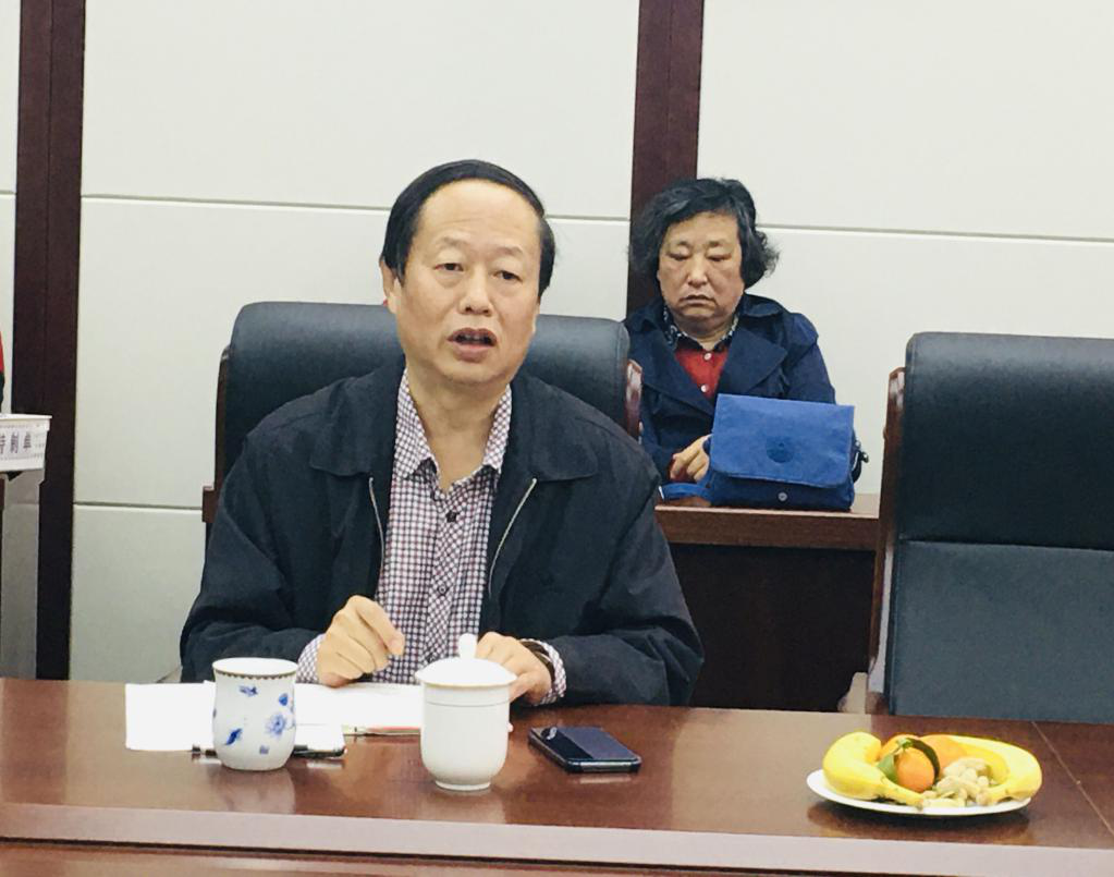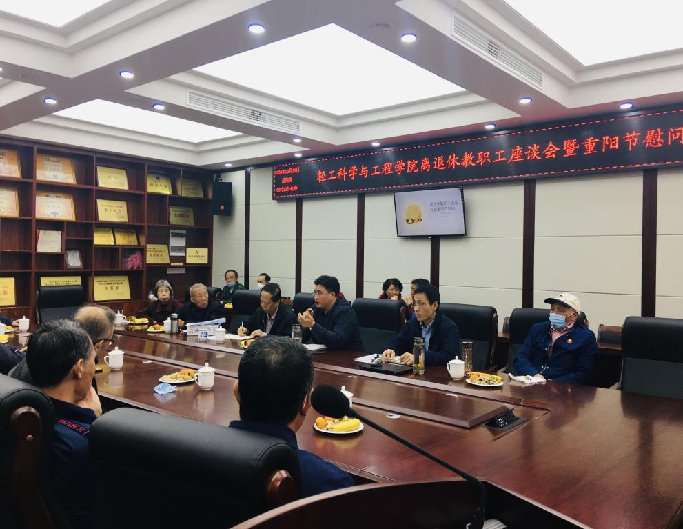 在纺工附楼205会议室召开离退休教职工座谈暨重阳节慰问会。学院党委刘晓虎书记、何有节院长、冯国涛副书记、党政办李慧主任、教工党支部代表、离退休教职工等参加本次会议。会议由刘晓虎书记主持。